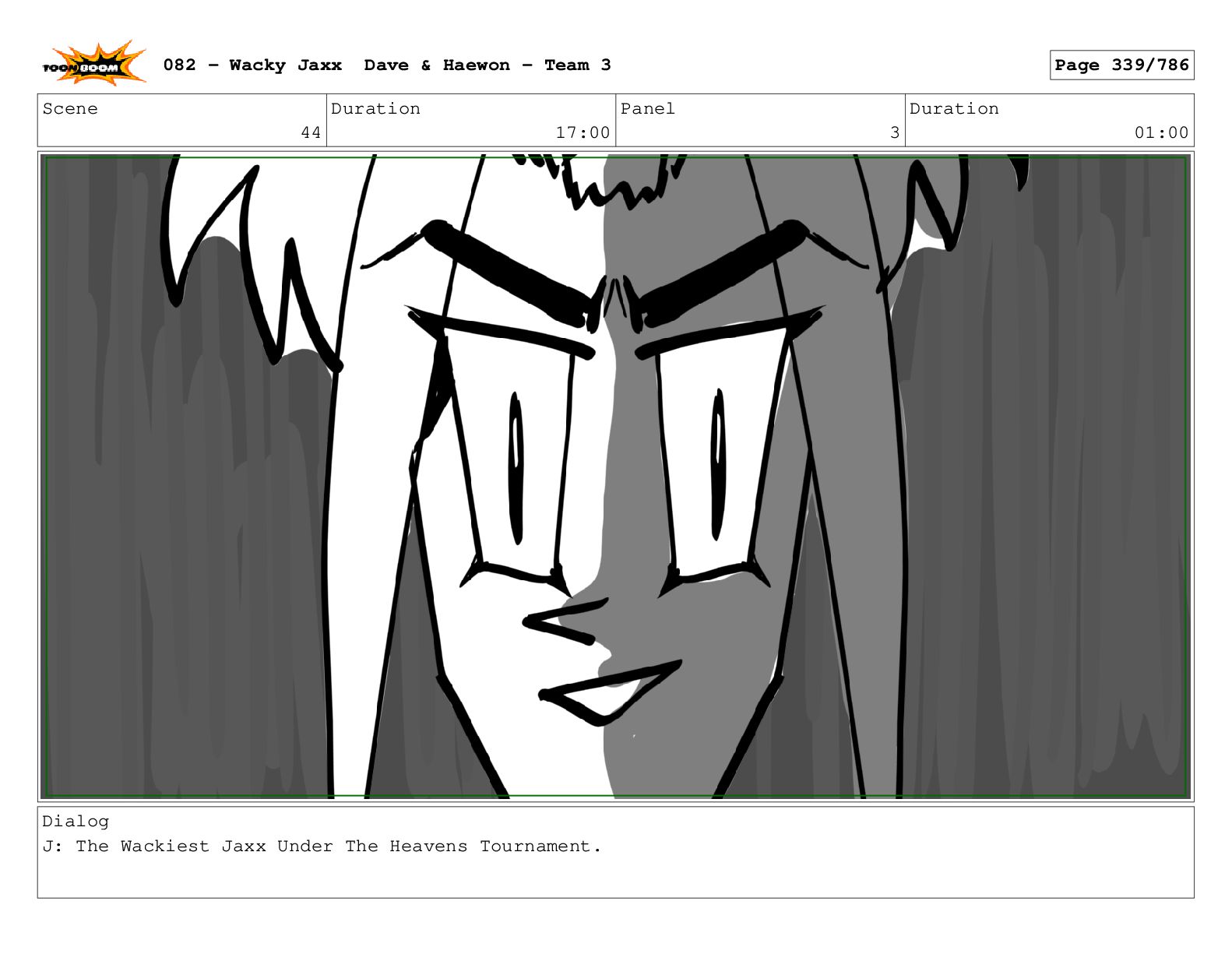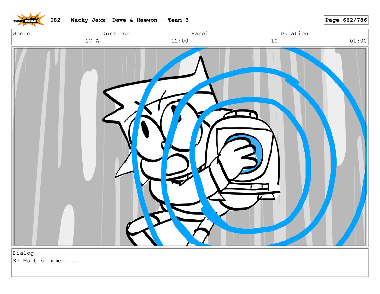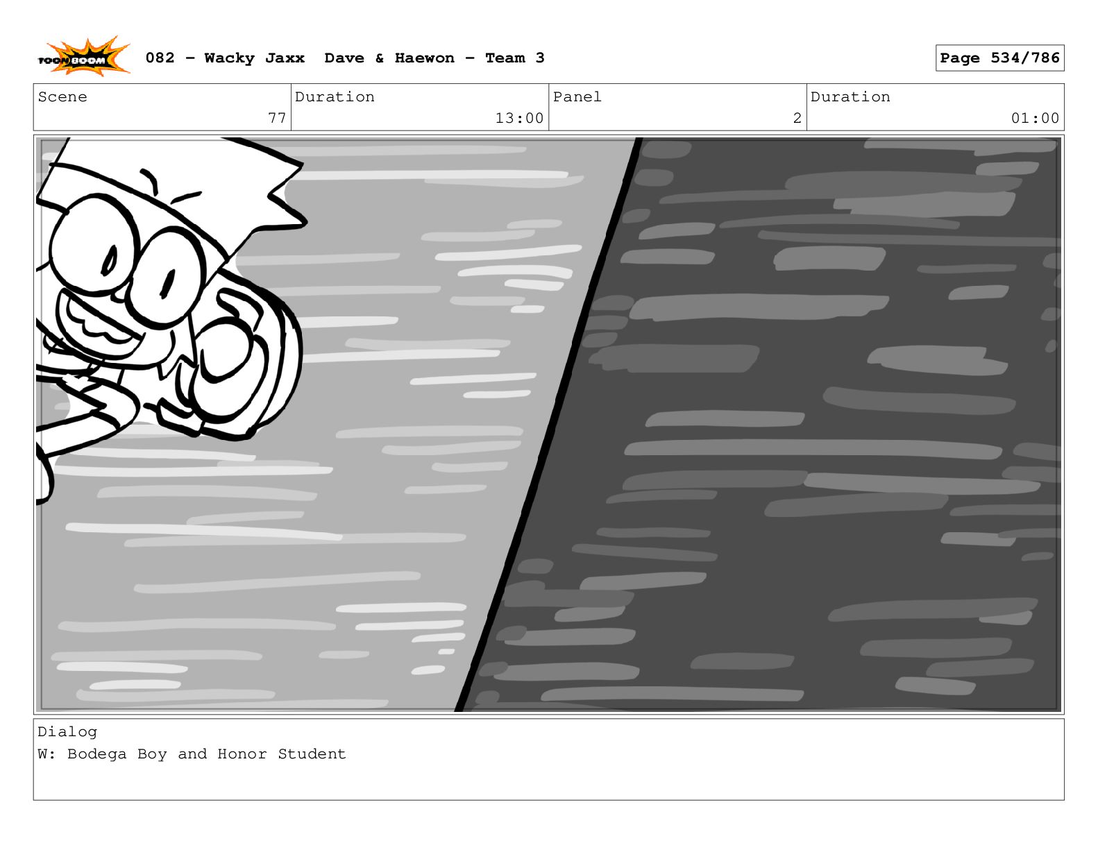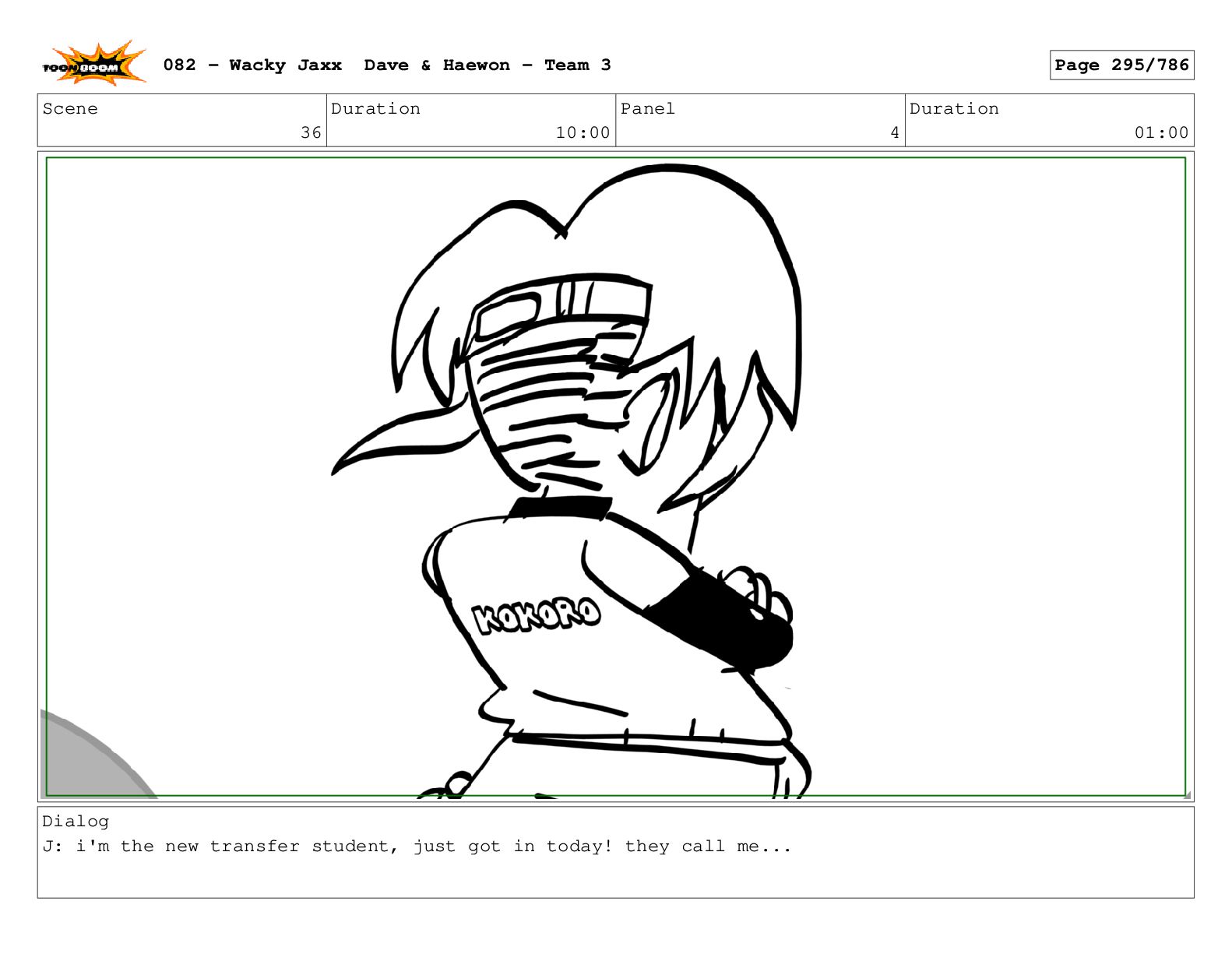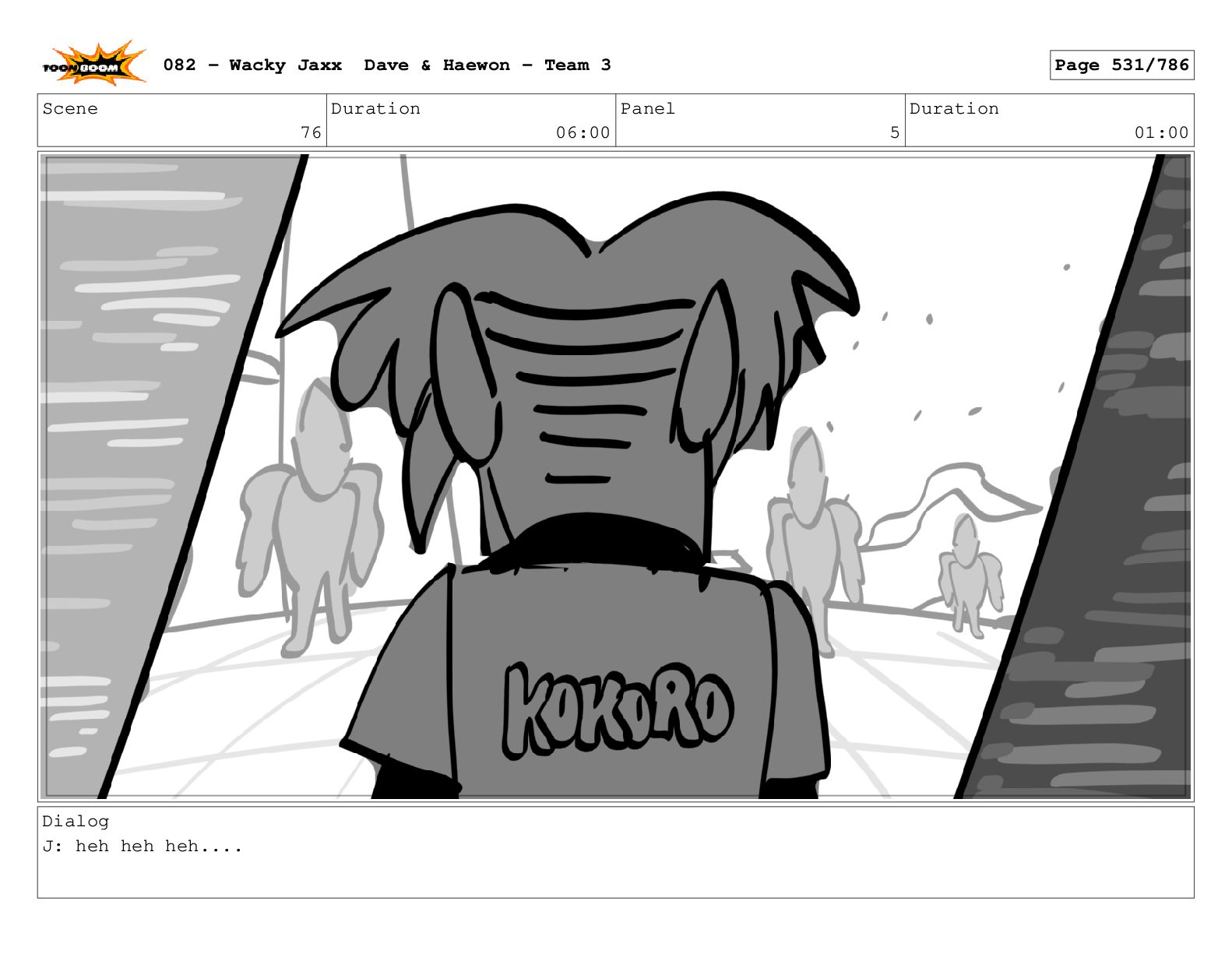 Scene 112 Duration 06:00 Panel 1 Duration 01:00 Dialog K/N: