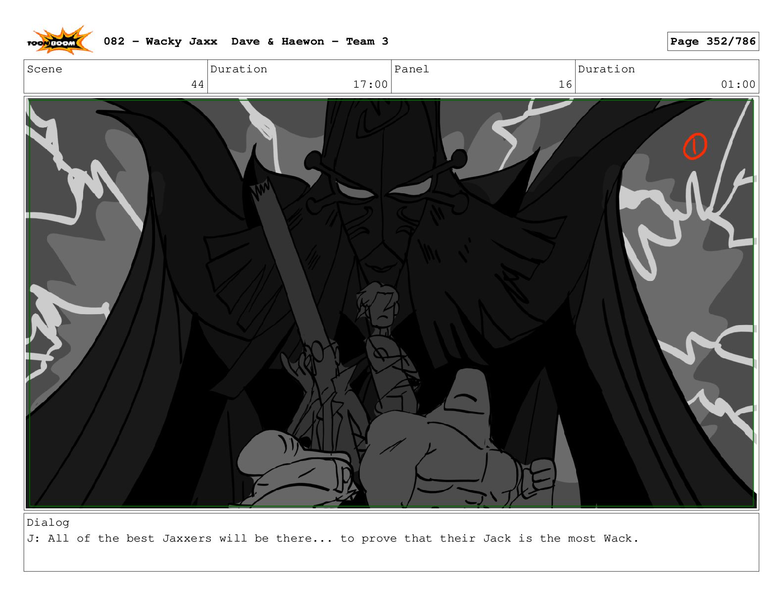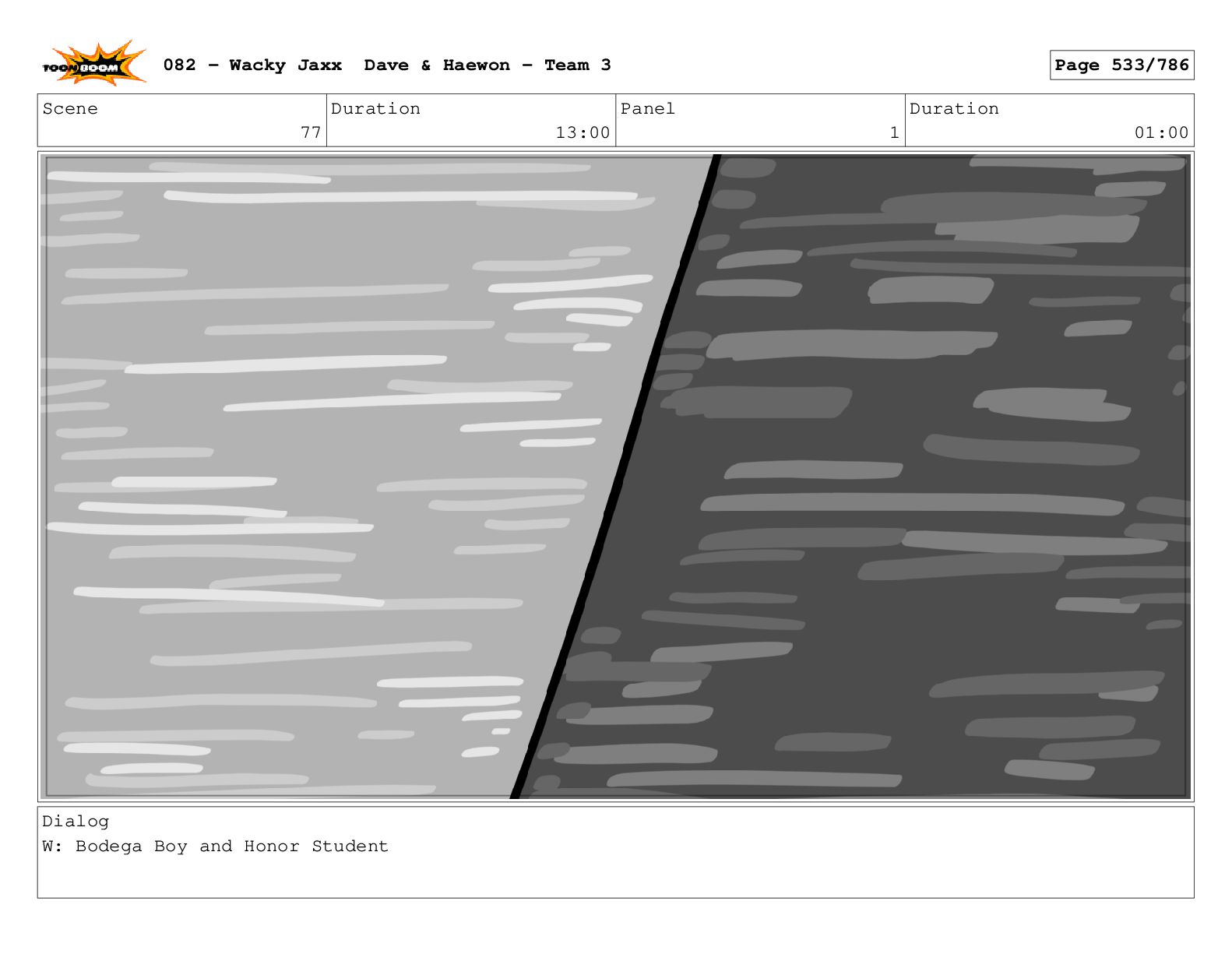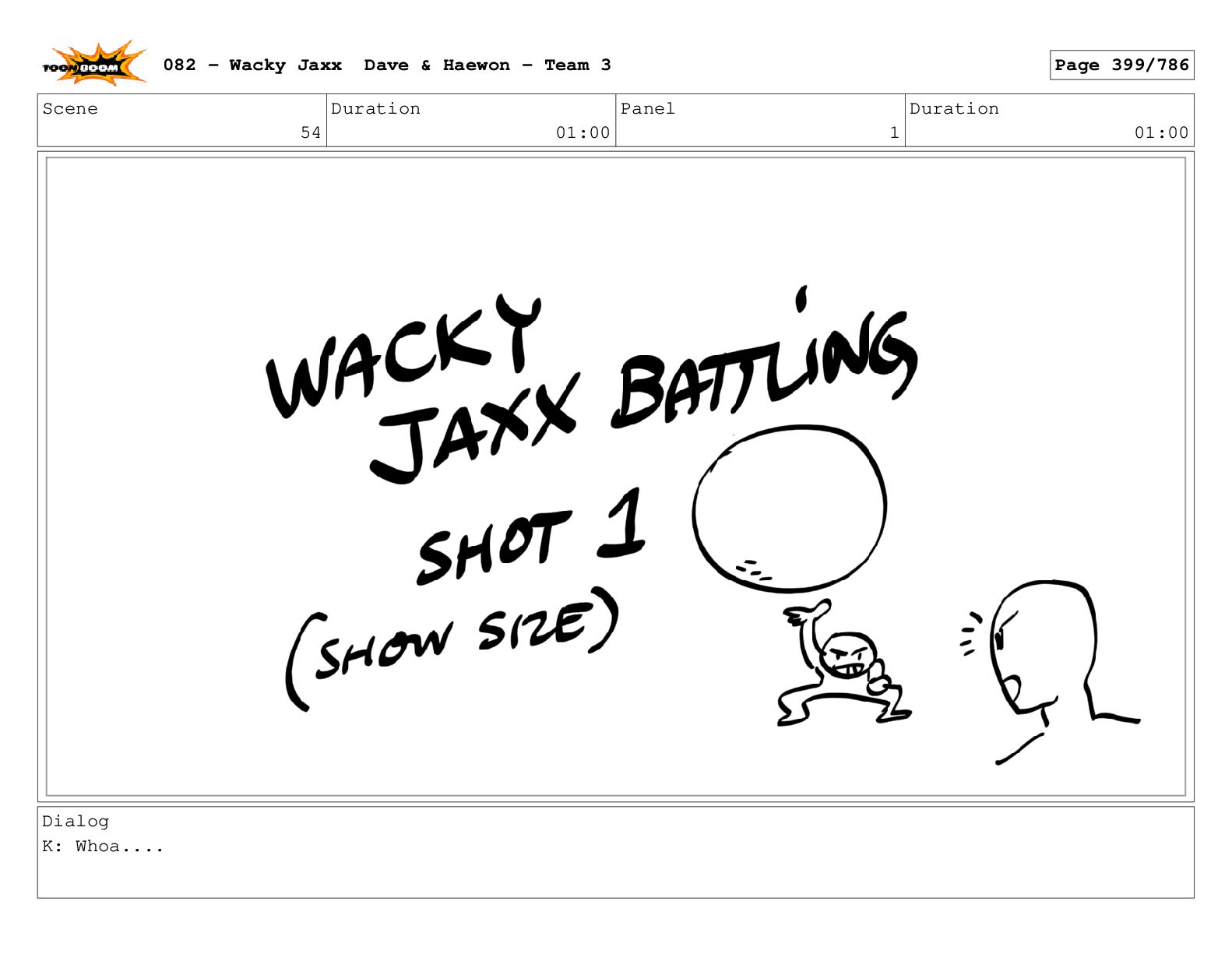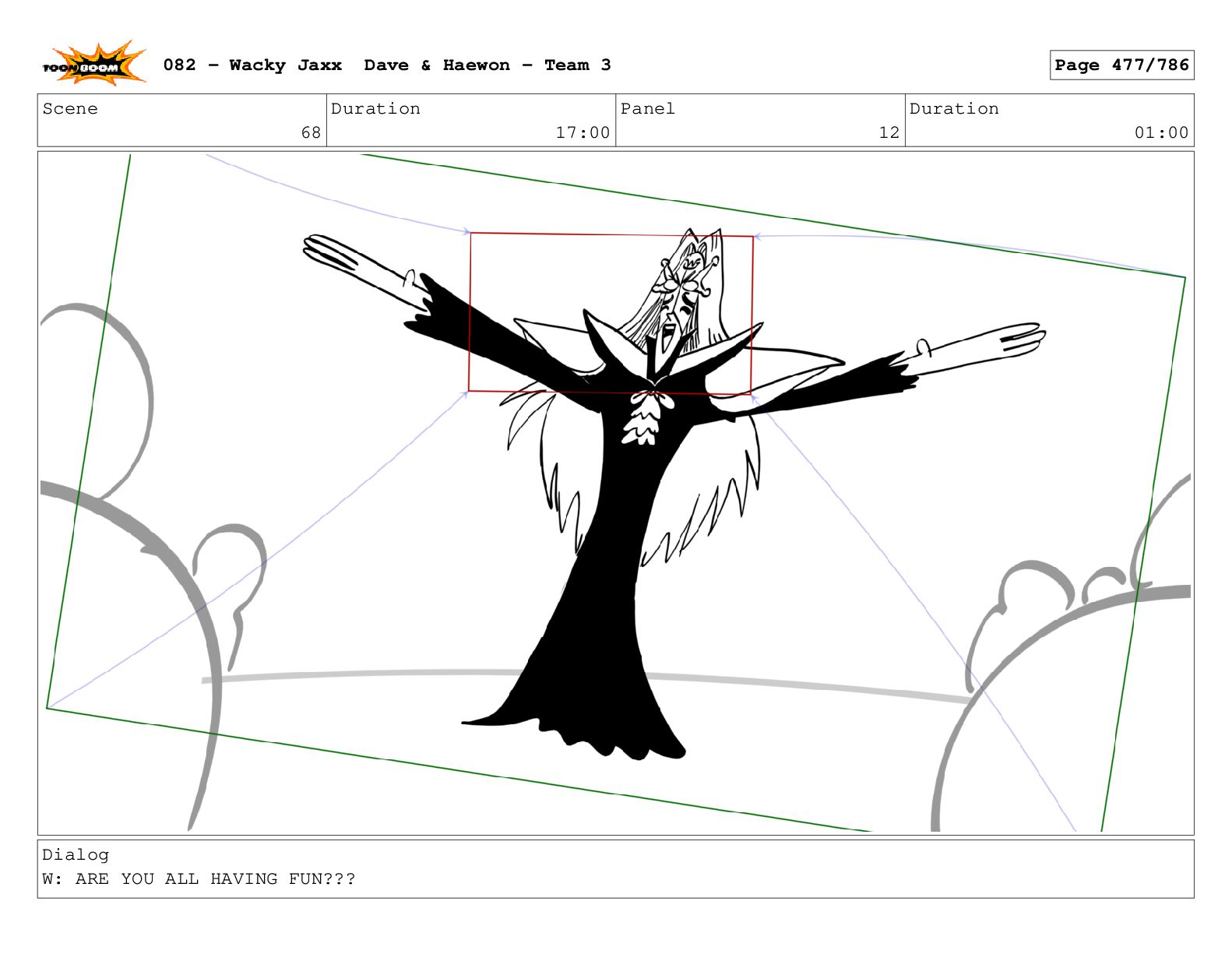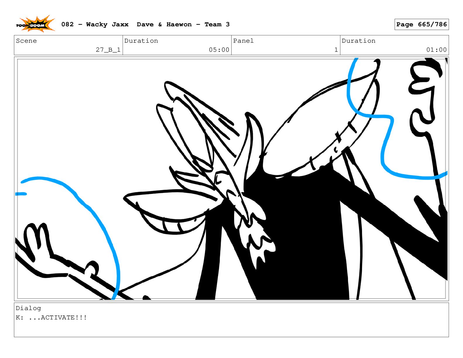 Scene 112 Duration 06:00 Panel 1 Duration 01:00 Dialog K/N: