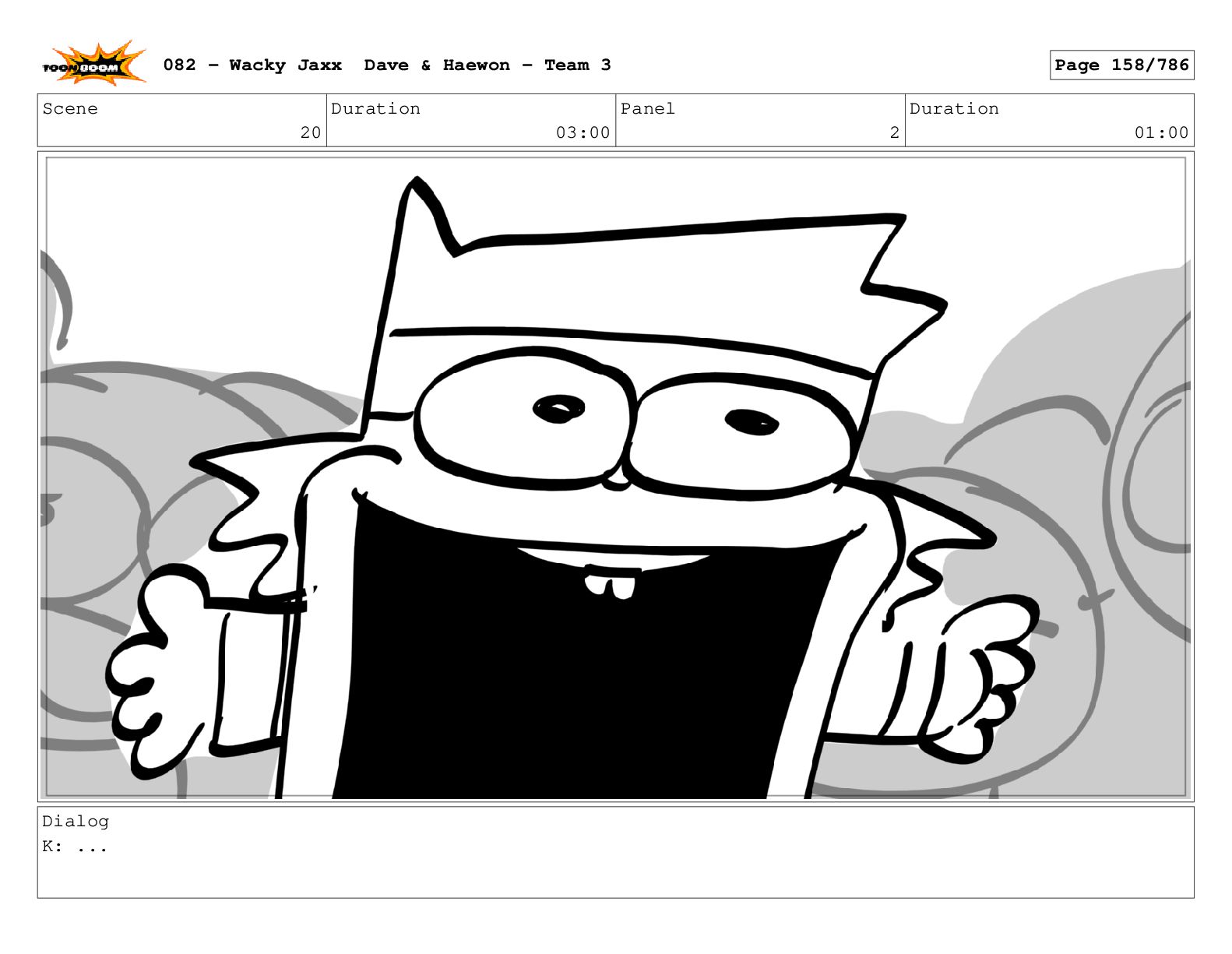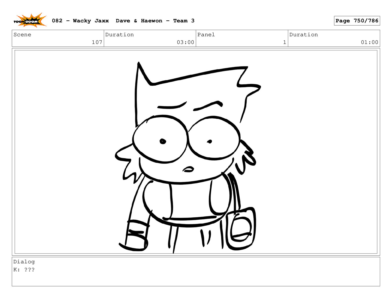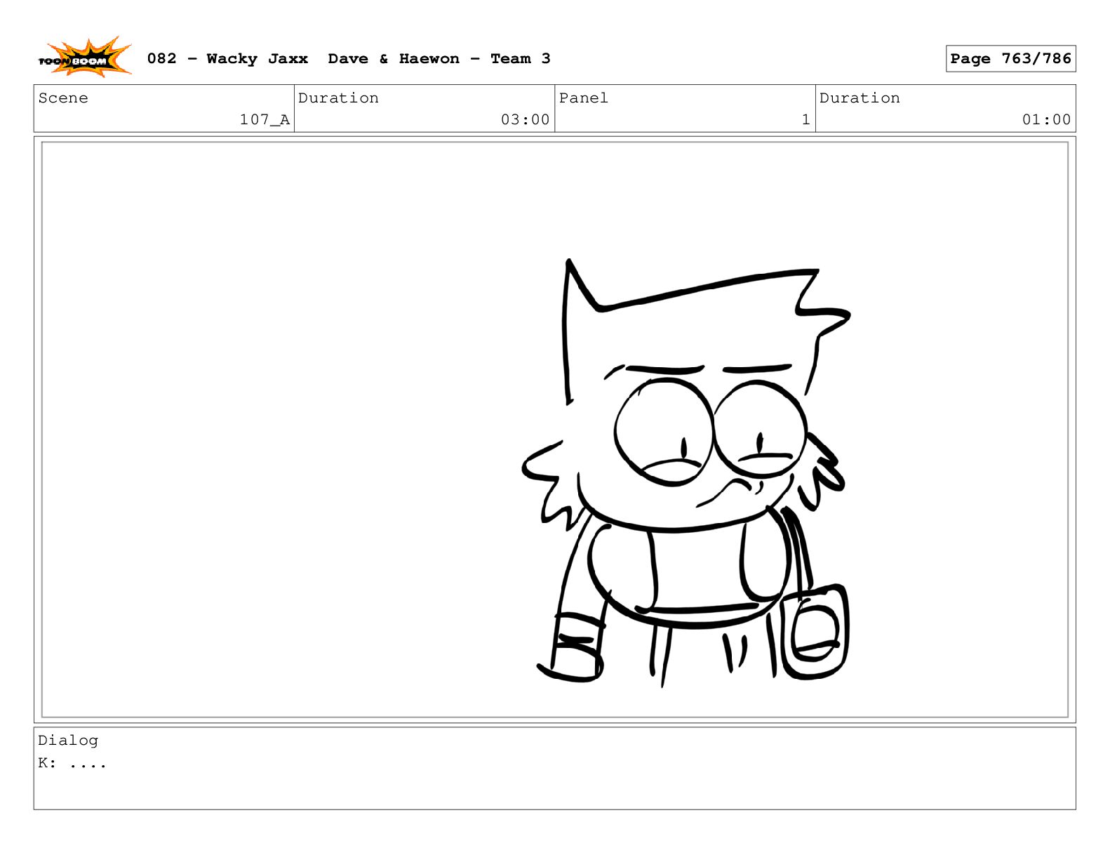 Scene 107 Duration 03:00 Panel 1 Duration 01:00 Dialog K: