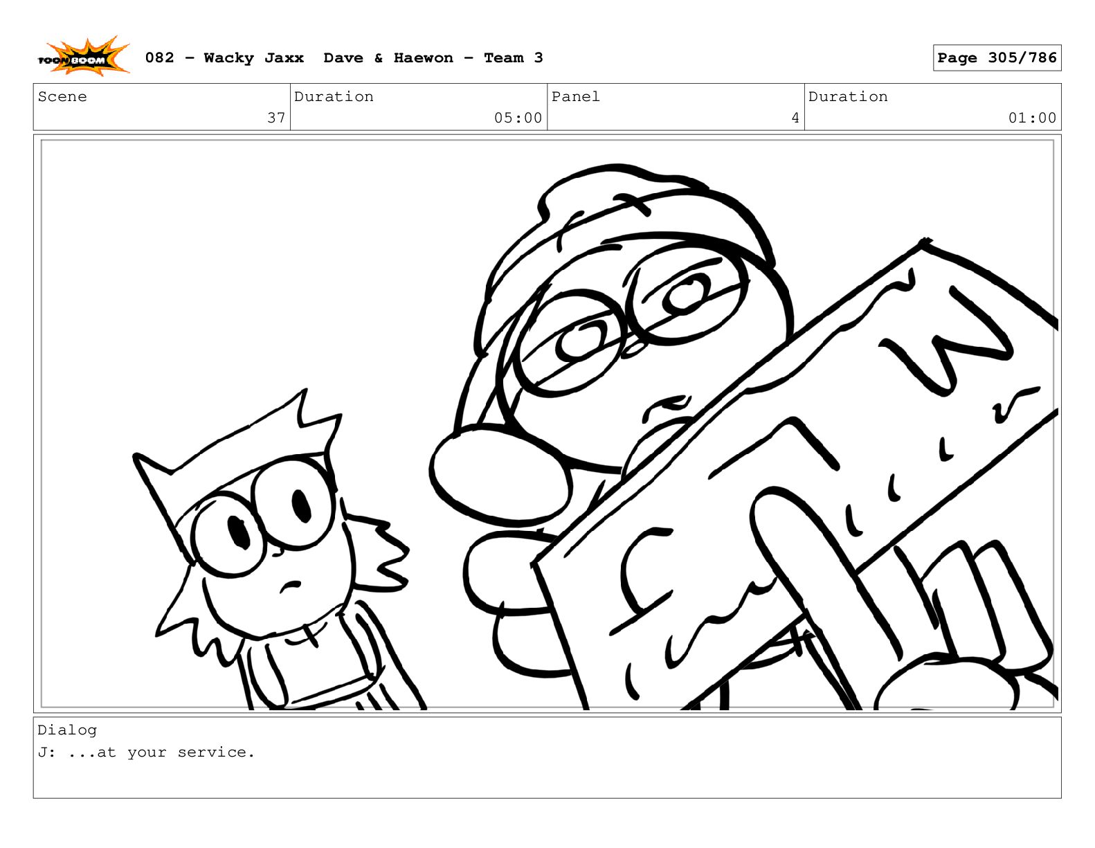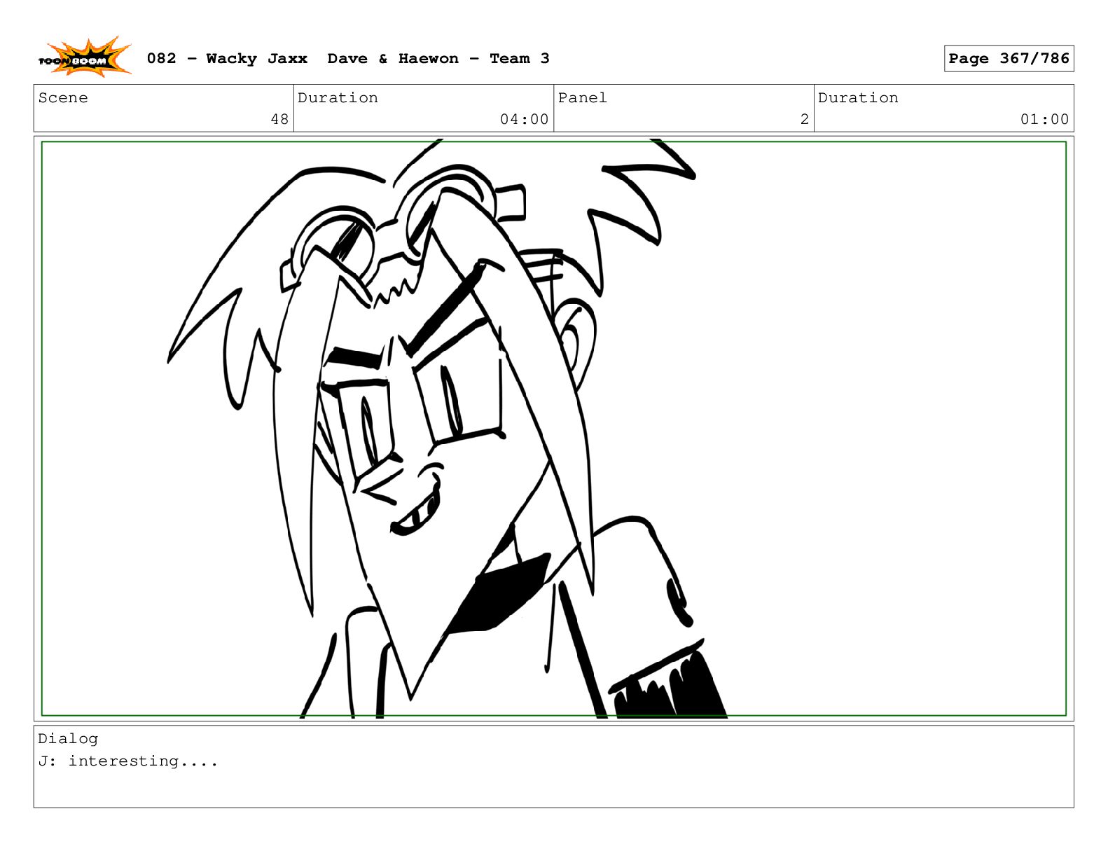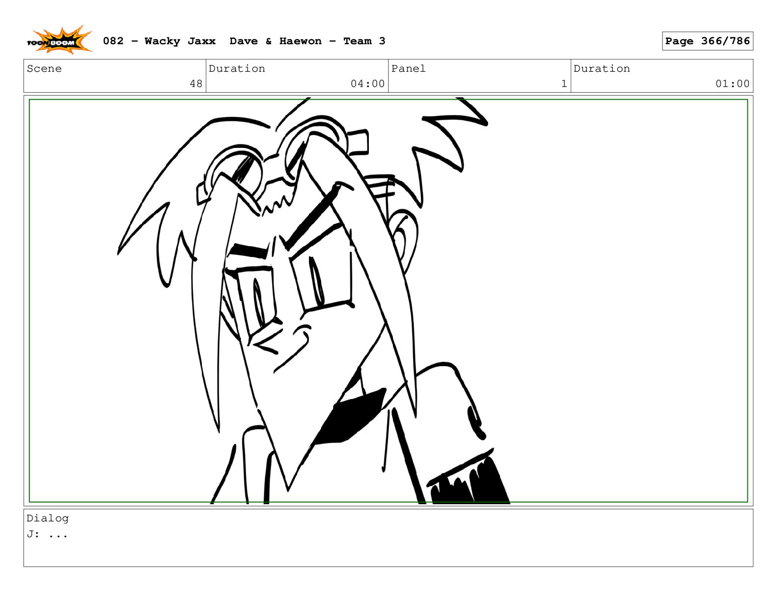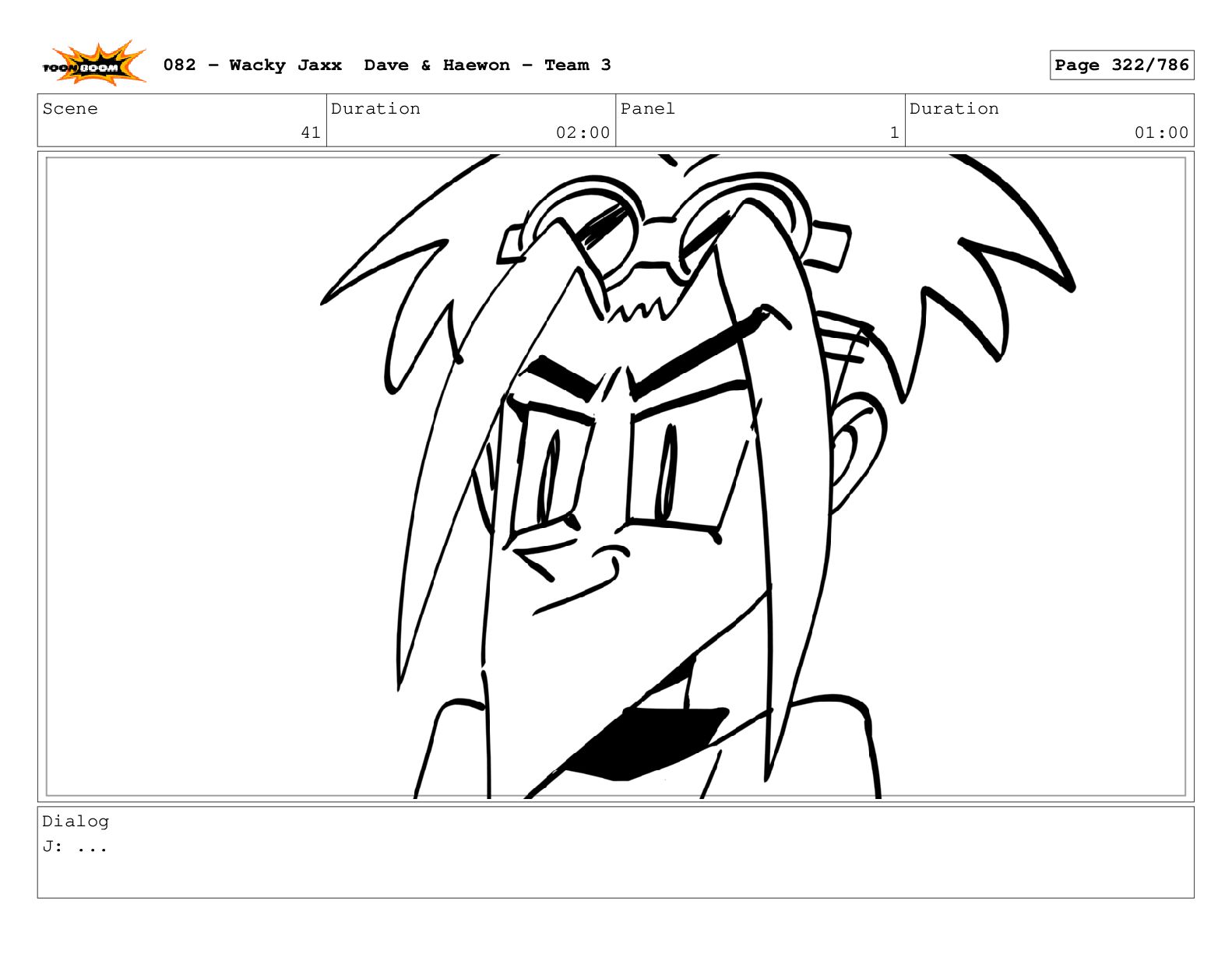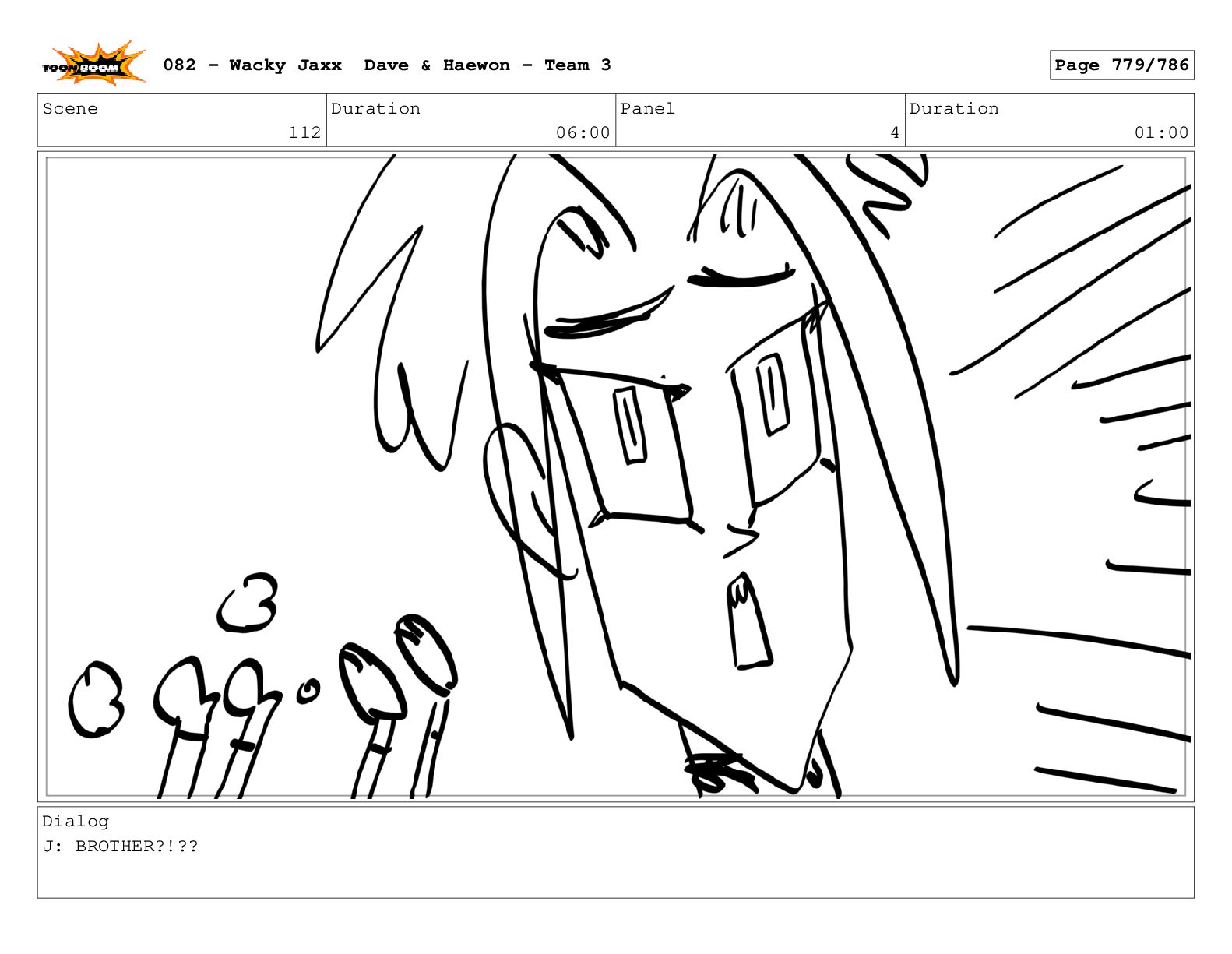 Scene 112 Duration 06:00 Panel 4 Duration 01:00 Dialog J: