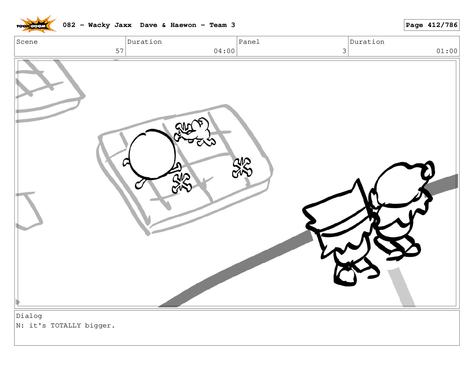 Scene 112 Duration 06:00 Panel 3 Duration 01:00 Dialog N: