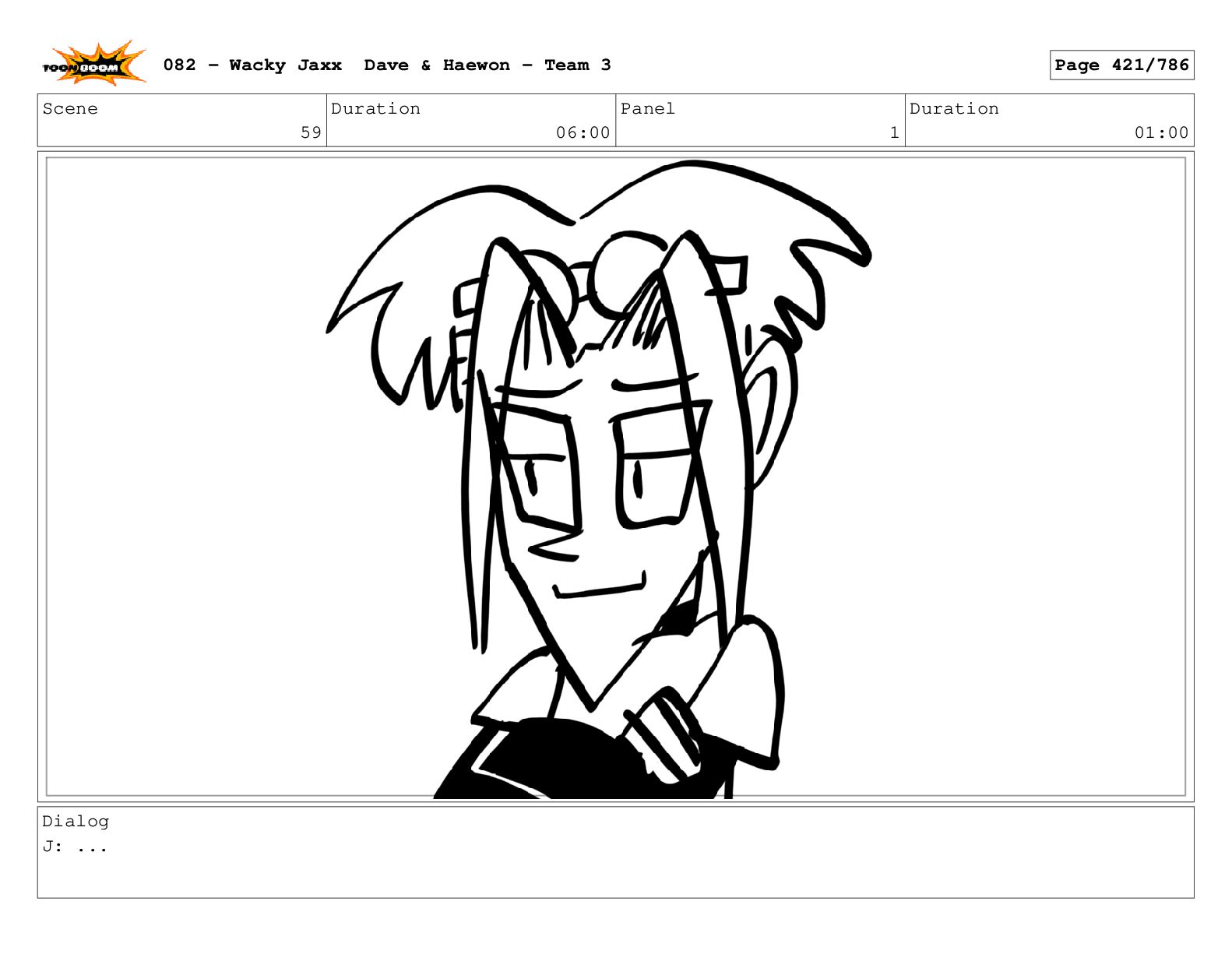 Scene 112 Duration 06:00 Panel 6 Duration 01:00 Dialog J: