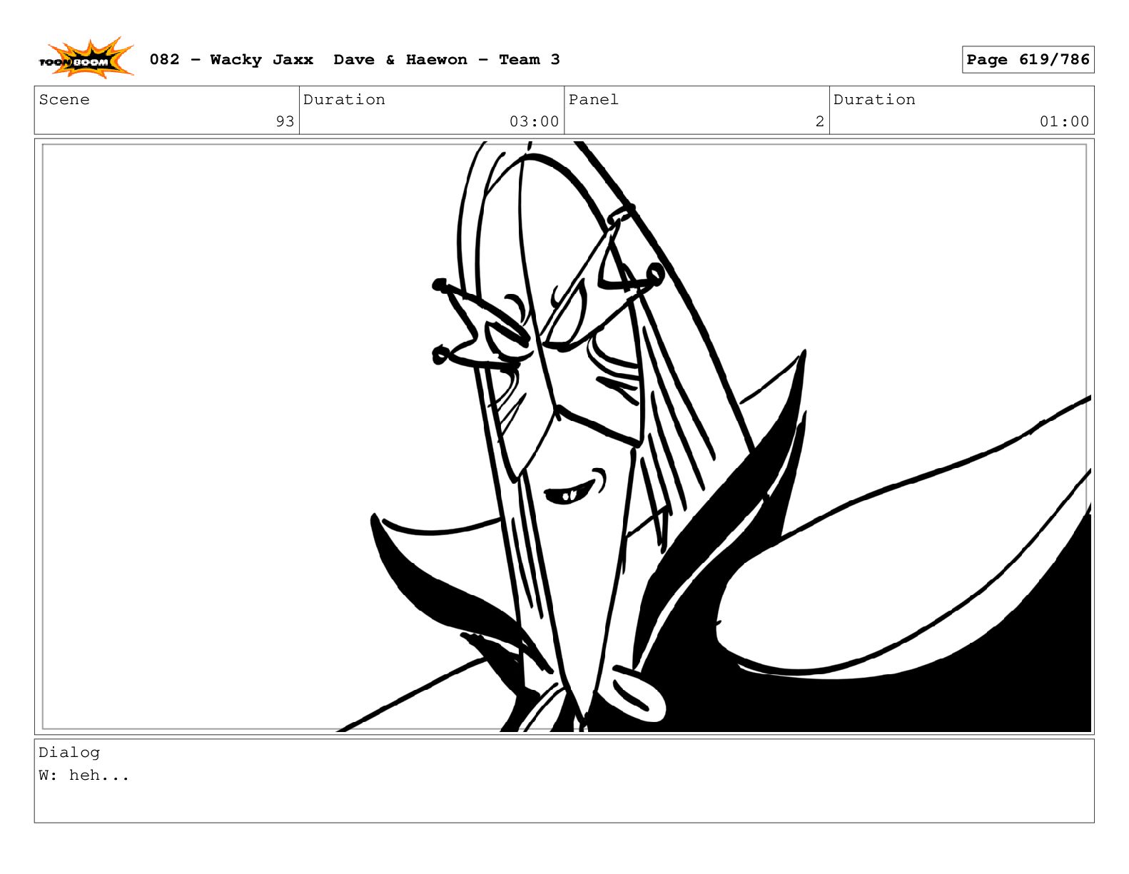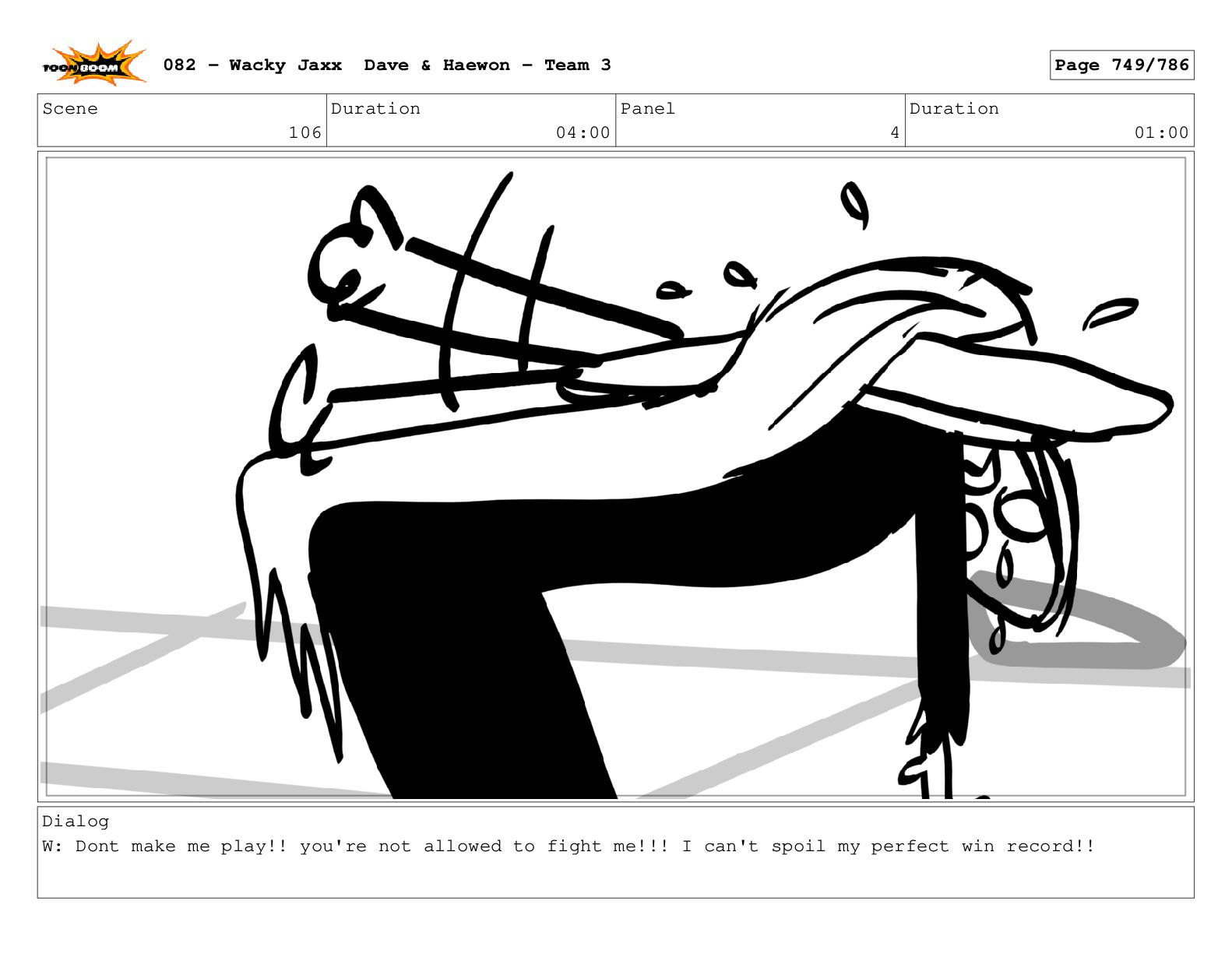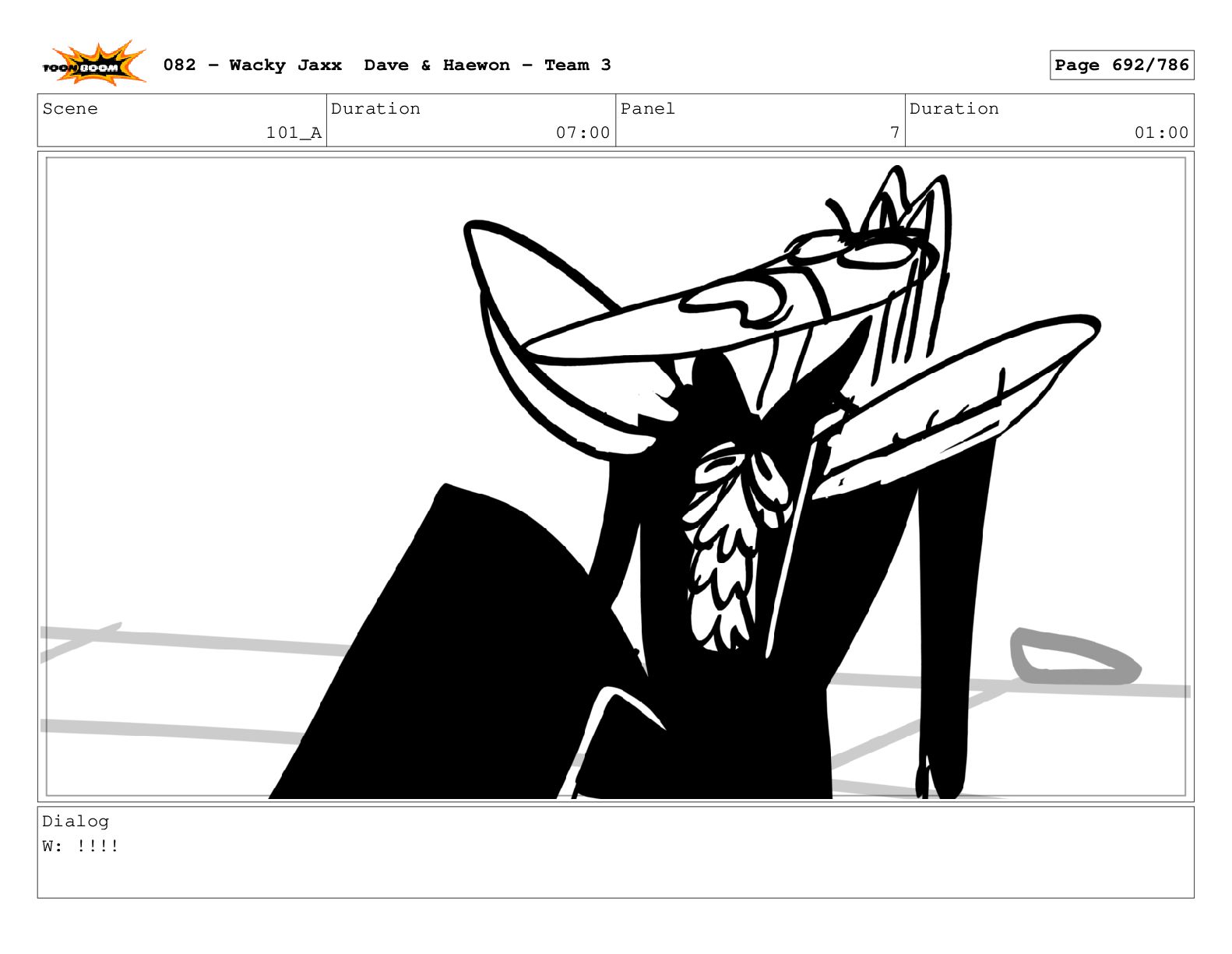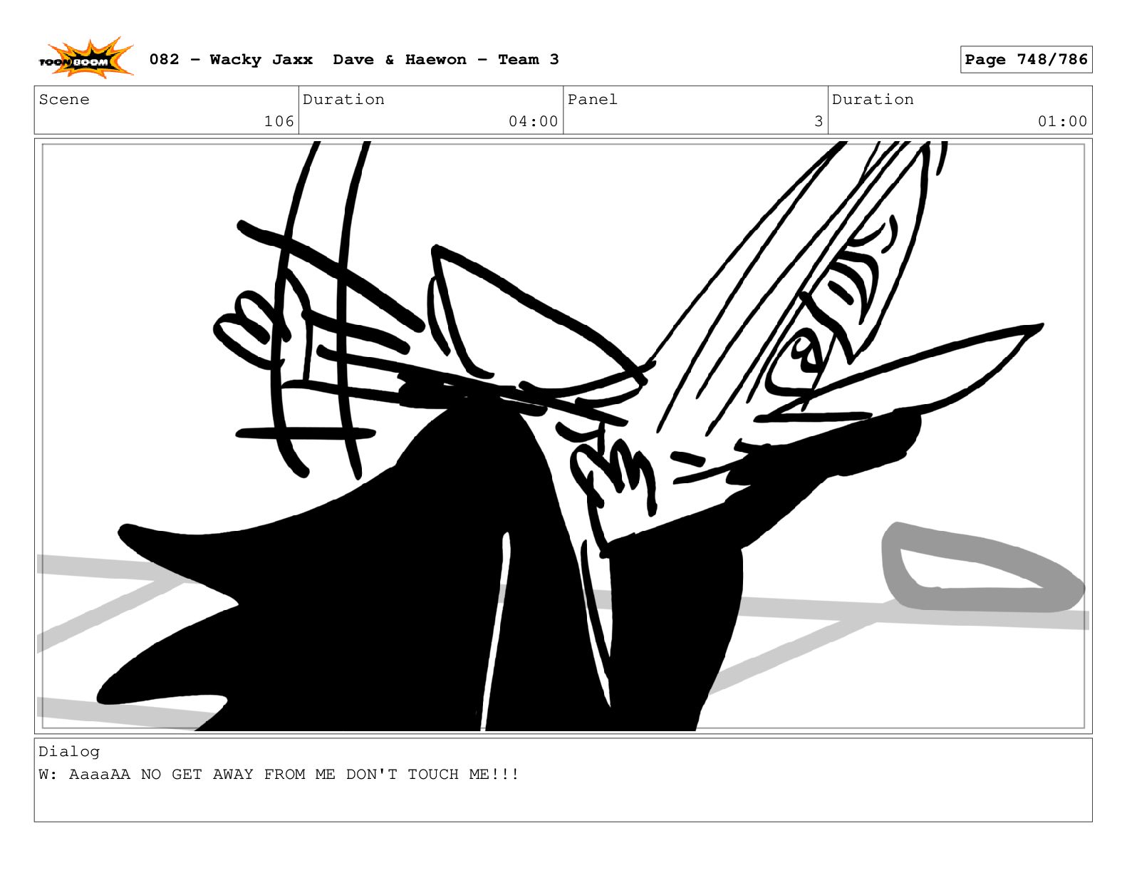 Scene 106 Duration 04:00 Panel 3 Duration 01:00 Dialog W: