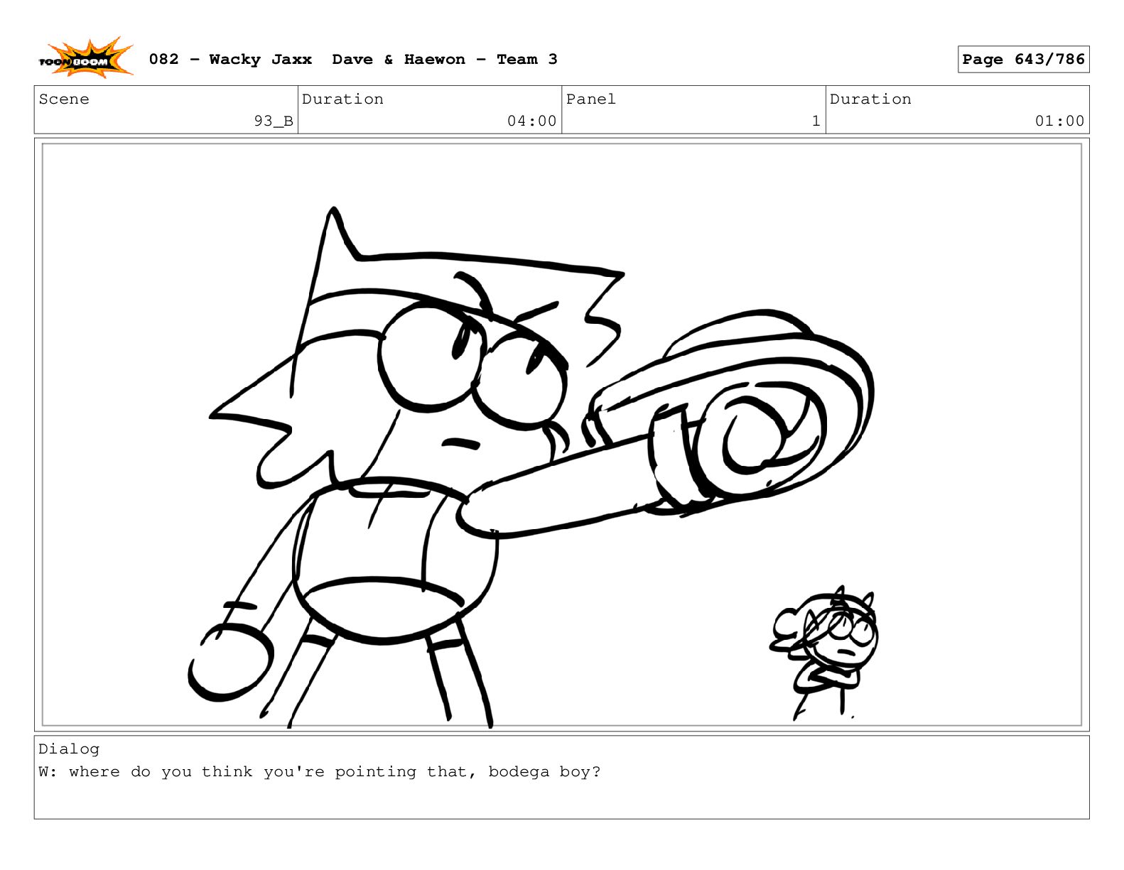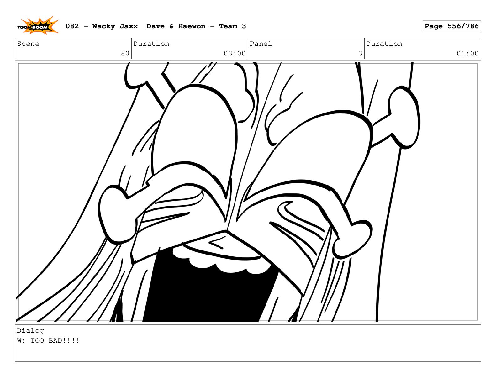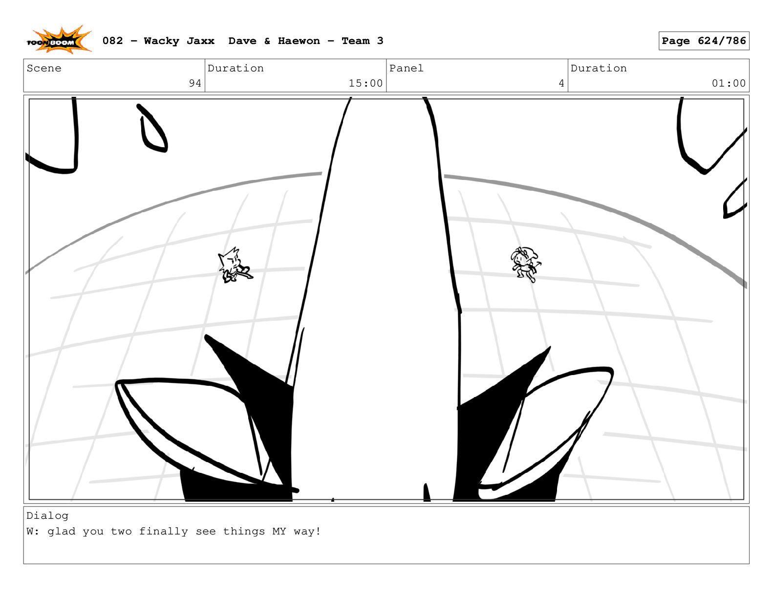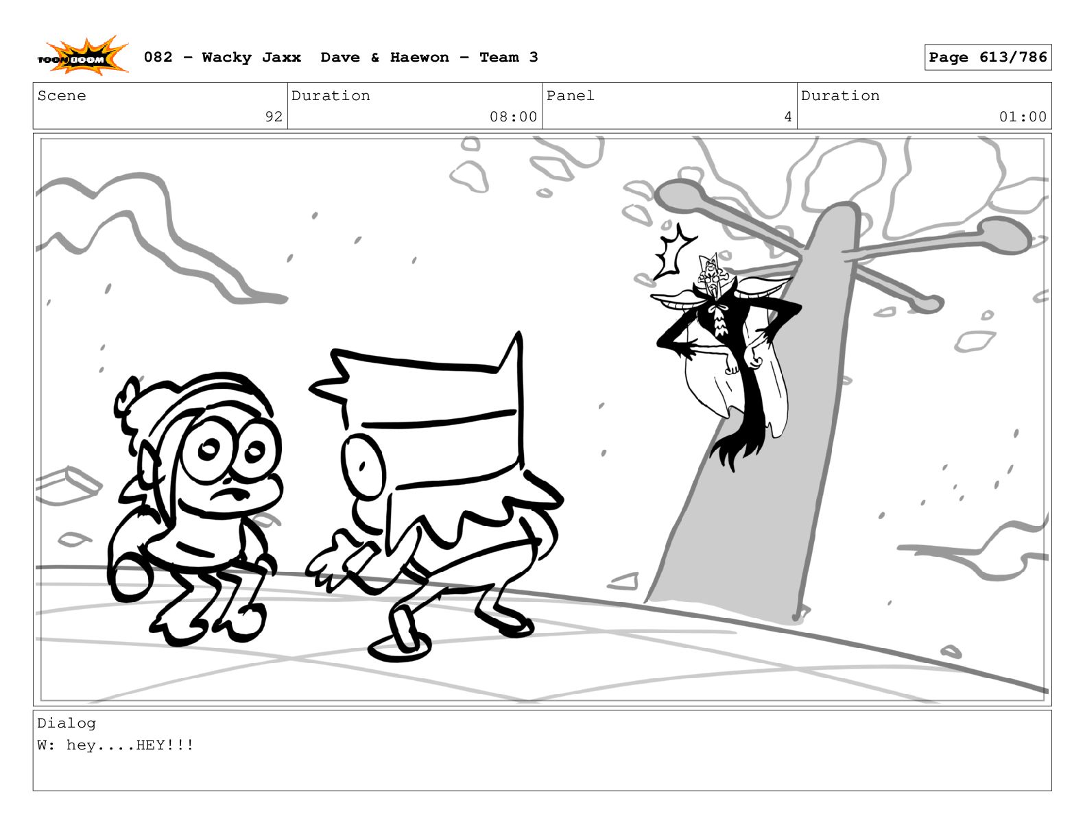 Scene 106 Duration 04:00 Panel 3 Duration 01:00 Dialog W:
