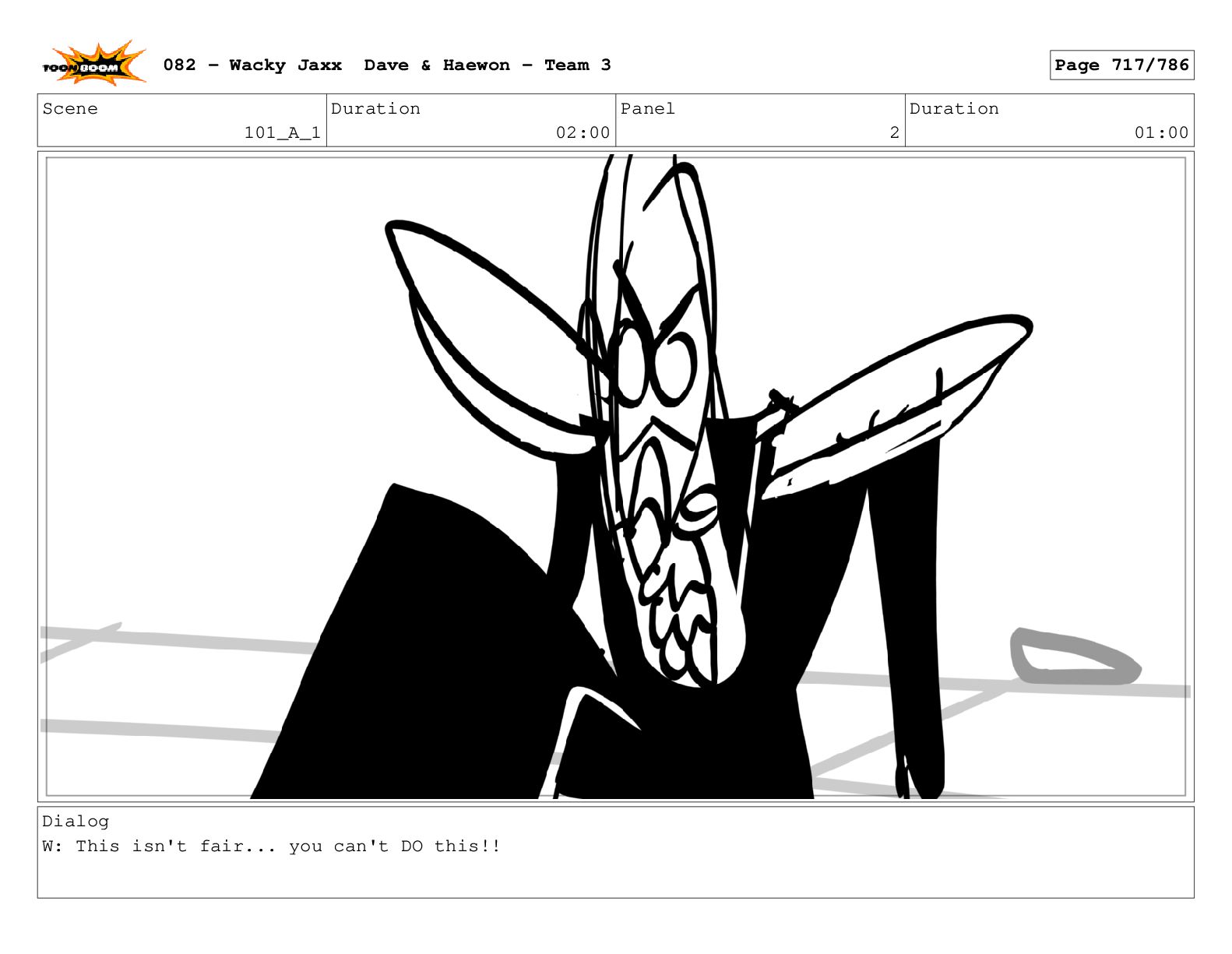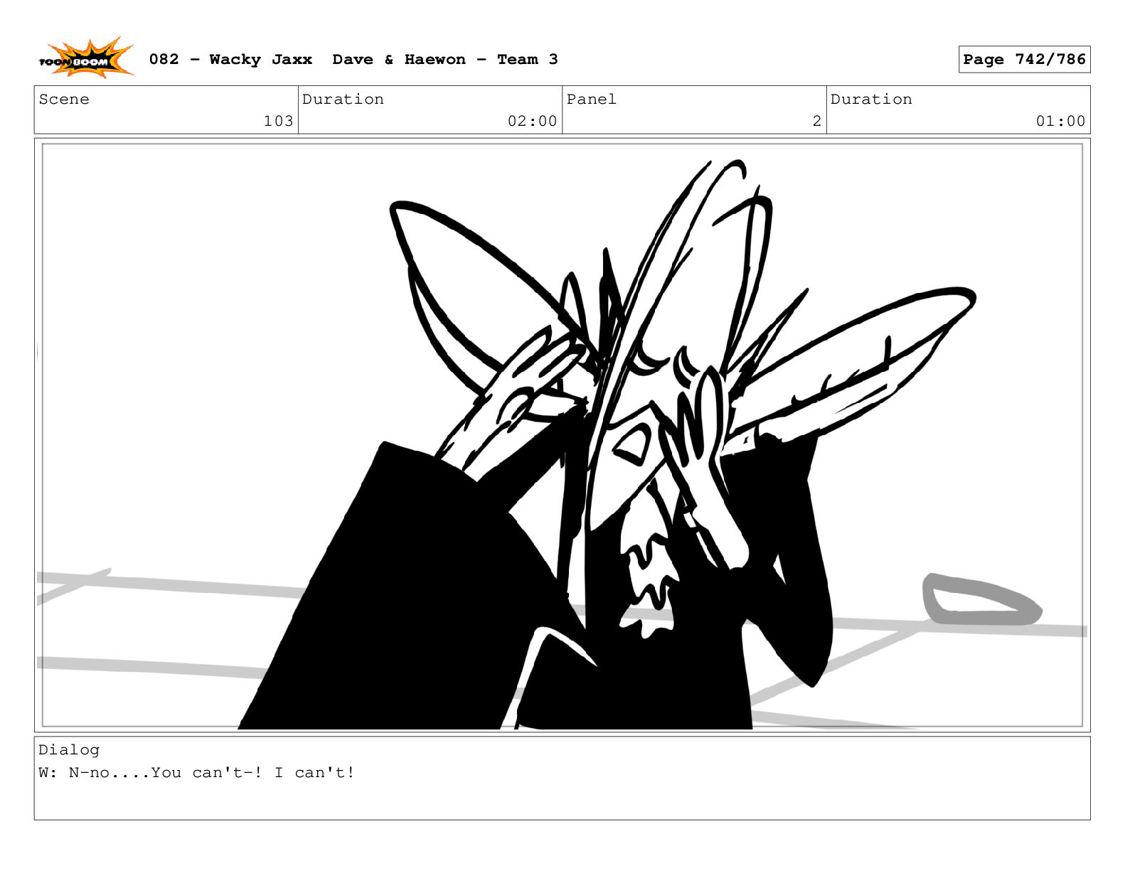 Scene 103 Duration 02:00 Panel 2 Duration 01:00 Dialog W: