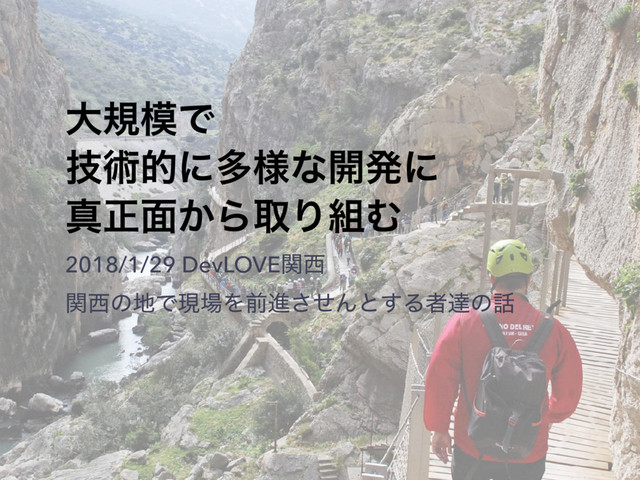 2018/01/29に開催されたDevLOVE関西主催の「関西の地で現場を前進させんとする者達の話」の発表資料です。 https://devlove-kansai.doorkeeper.jp/events/68669