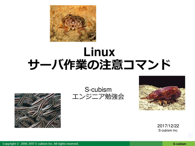 0 Linux サーバ作業の注意コマンド S-cubism エンジニア勉強会 2017/12/22 S-cubism Inc.