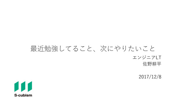 最近勉強してること、次にやりたいこと エンジニアLT 佐野耕平 2017/12/8