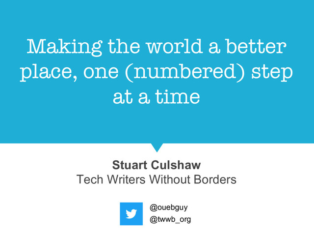Presentation from Write The docs Prague 2017: Created in 2016, Tech Writers Without Borders aims to connect technical communicators with nonprofits seeking help with their documentation and training materials.