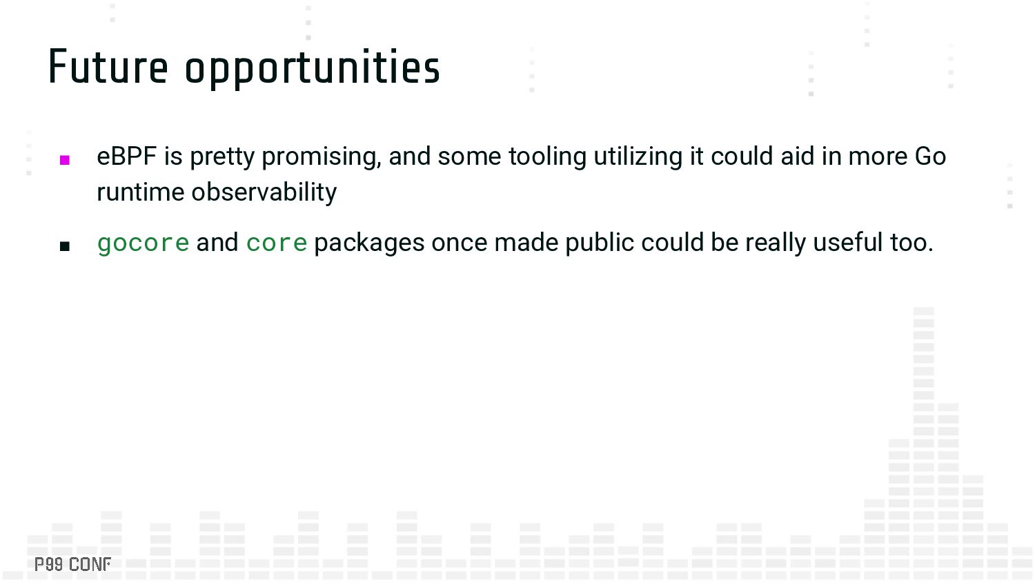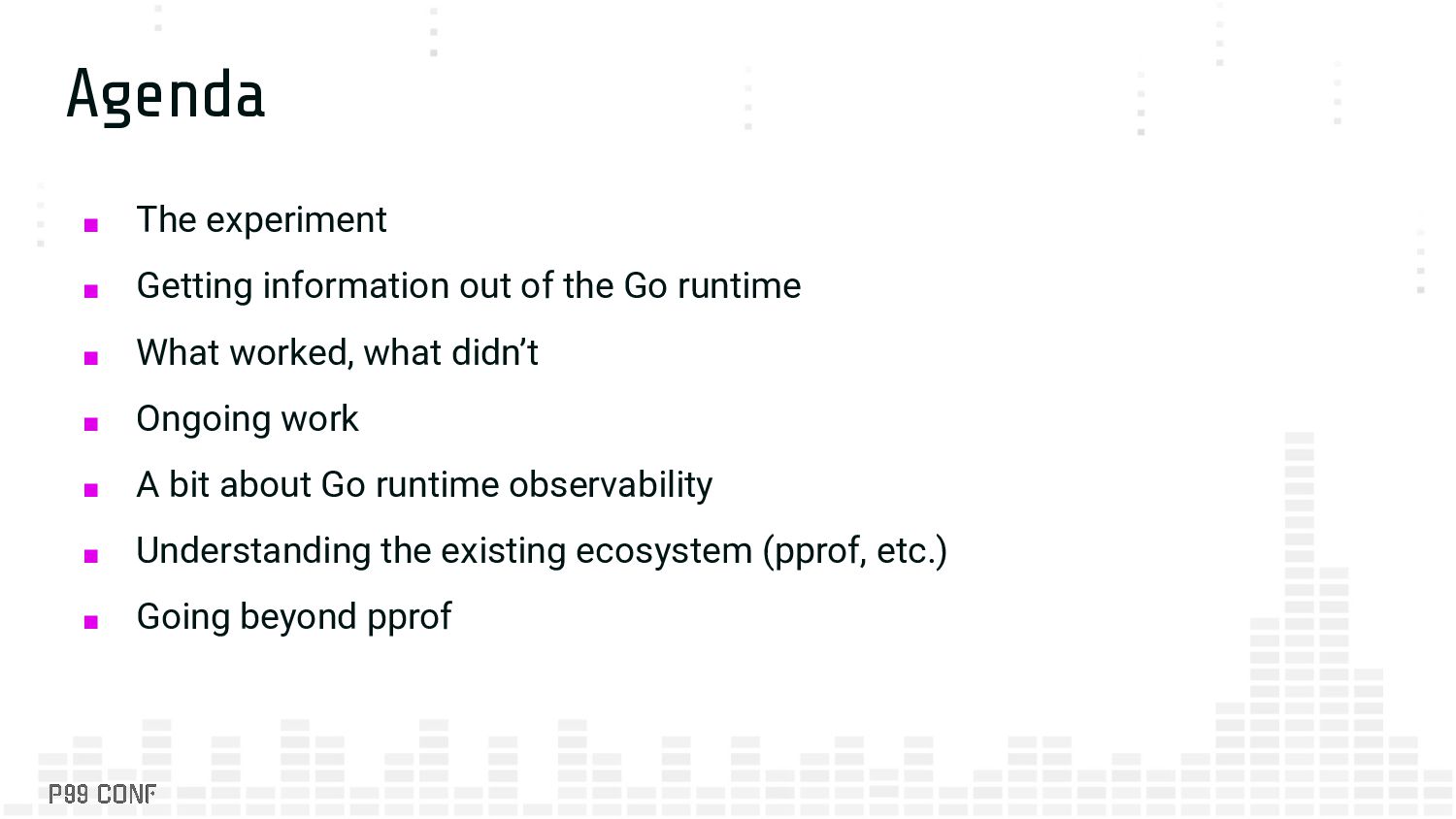 Go runtime ▪ What worked, what didn’t ▪ Ongoing work ▪ A bit about Go runtime observability ▪ Understanding the existing ecosystem (pprof, etc.) ▪ Going beyond pprof