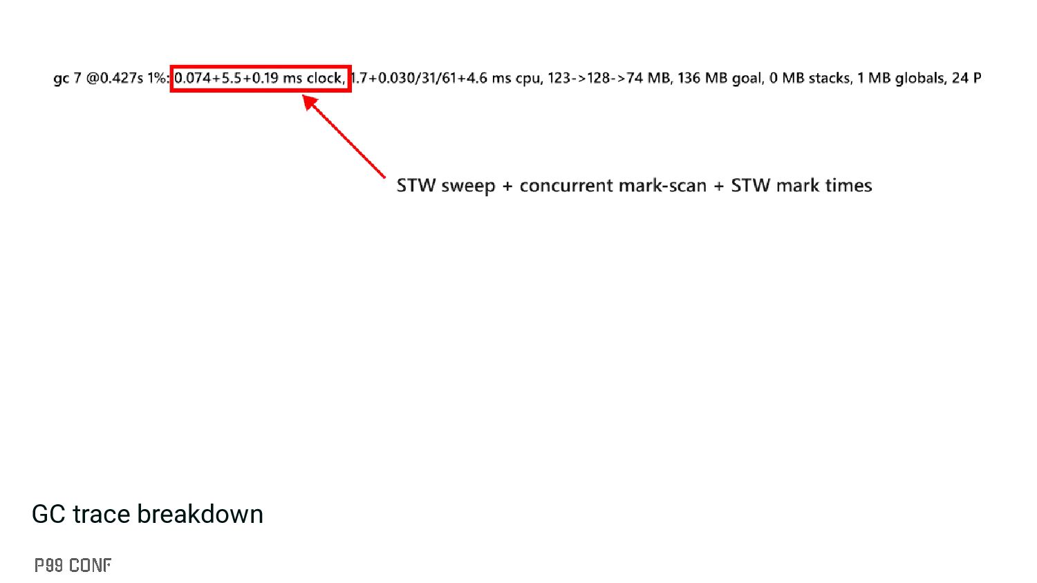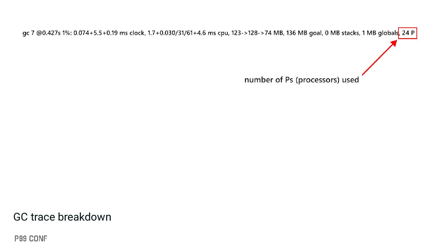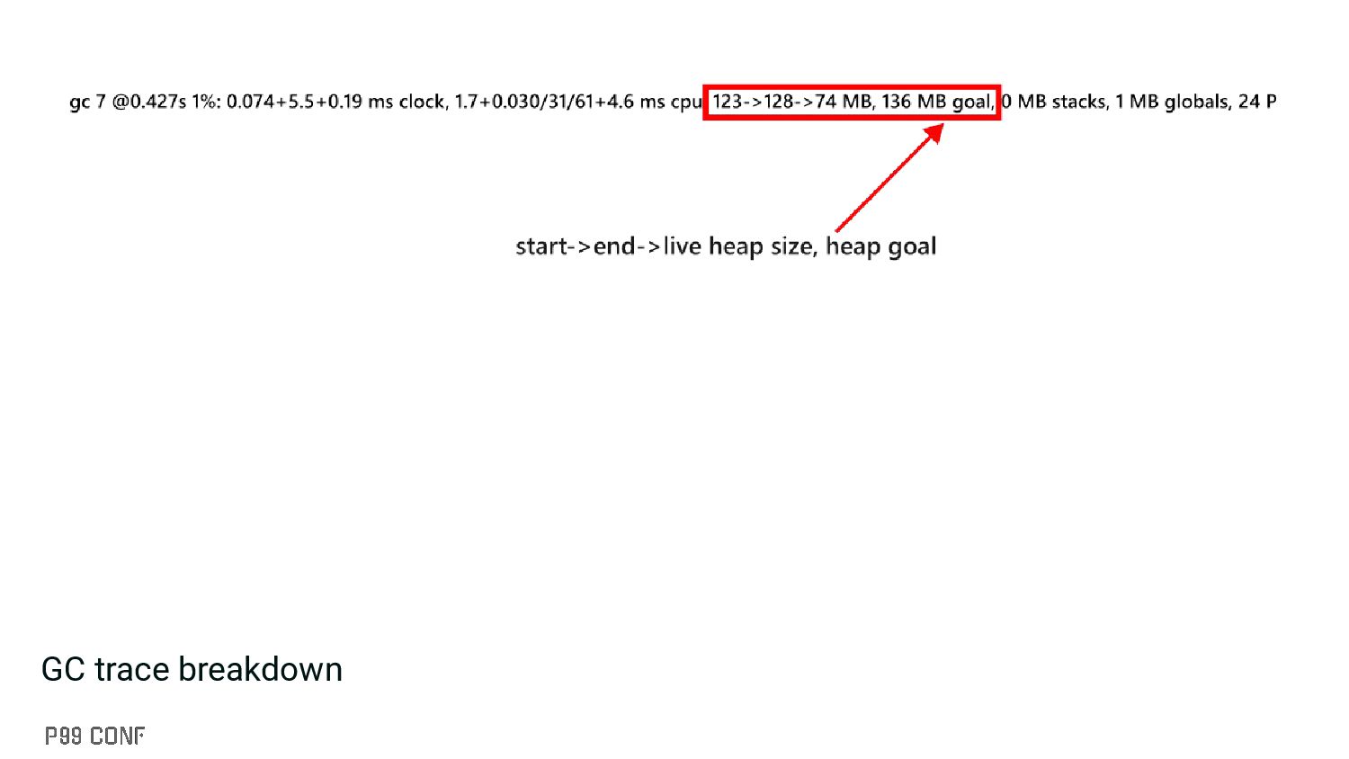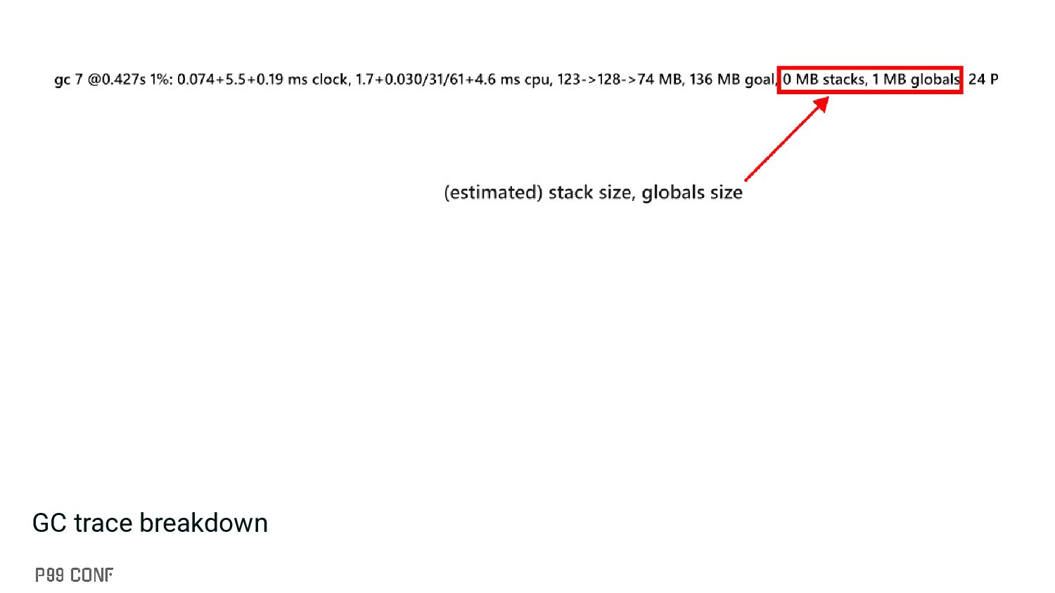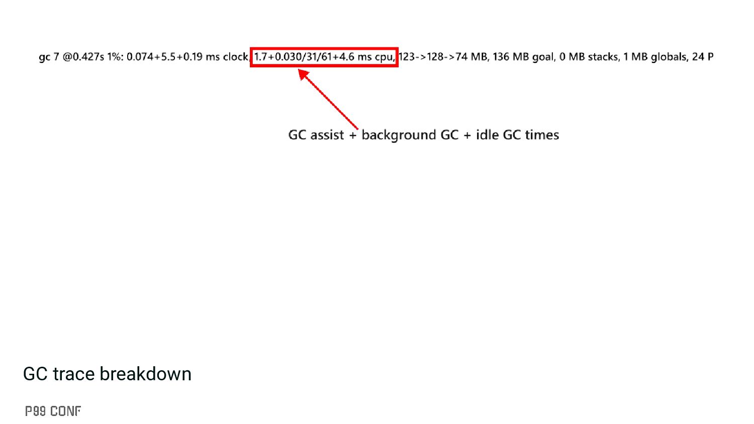 ▪ Slightly less overhead than the execution tracer ▪ Can be enabled through: GODEBUG=gctrace=1 ▪ You can also get information about the GC pacer: GODEBUG=gctrace=1,gcpacertrace=1