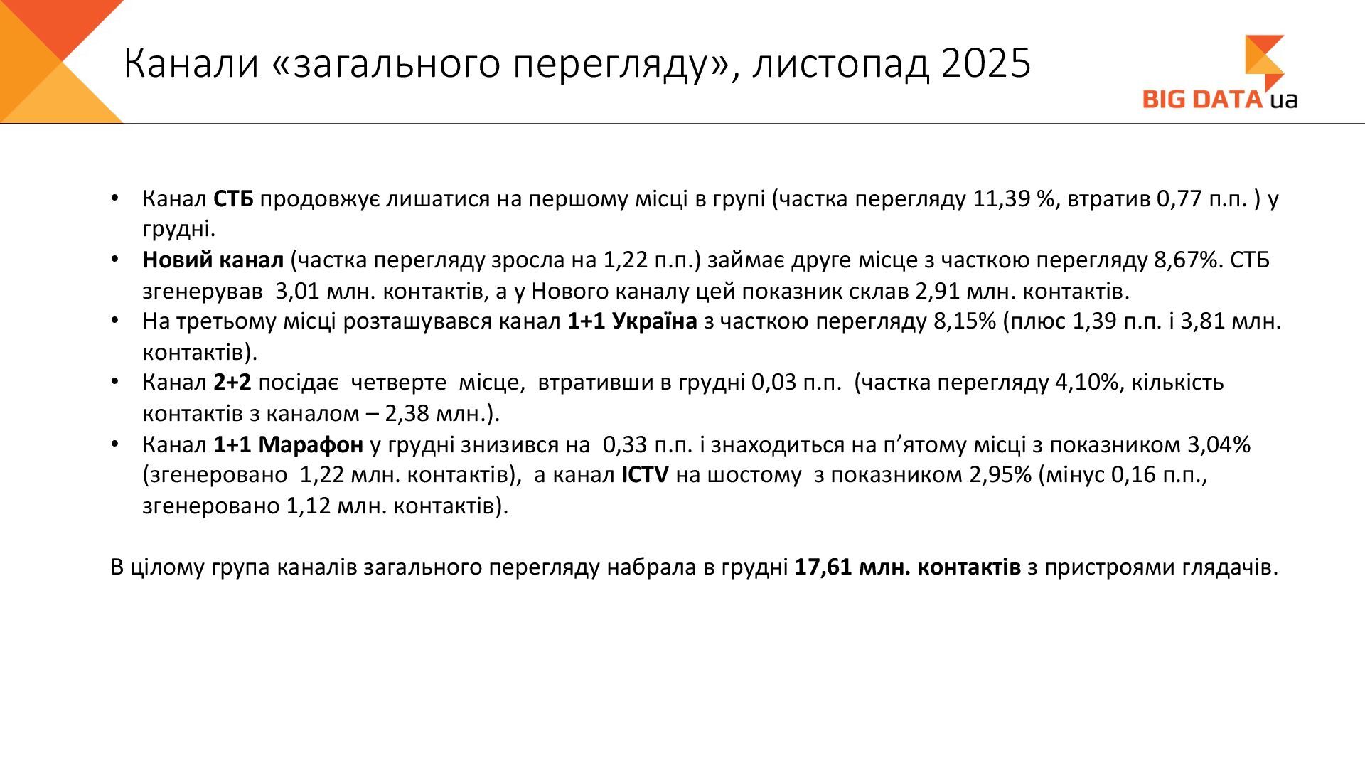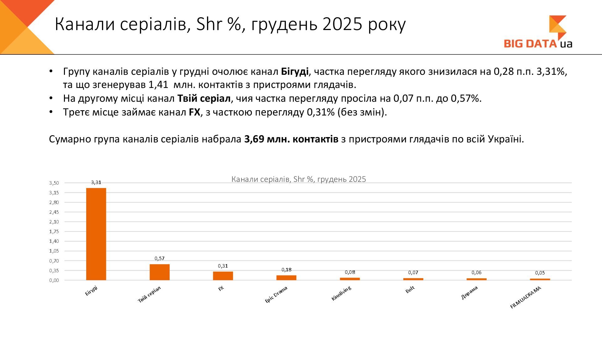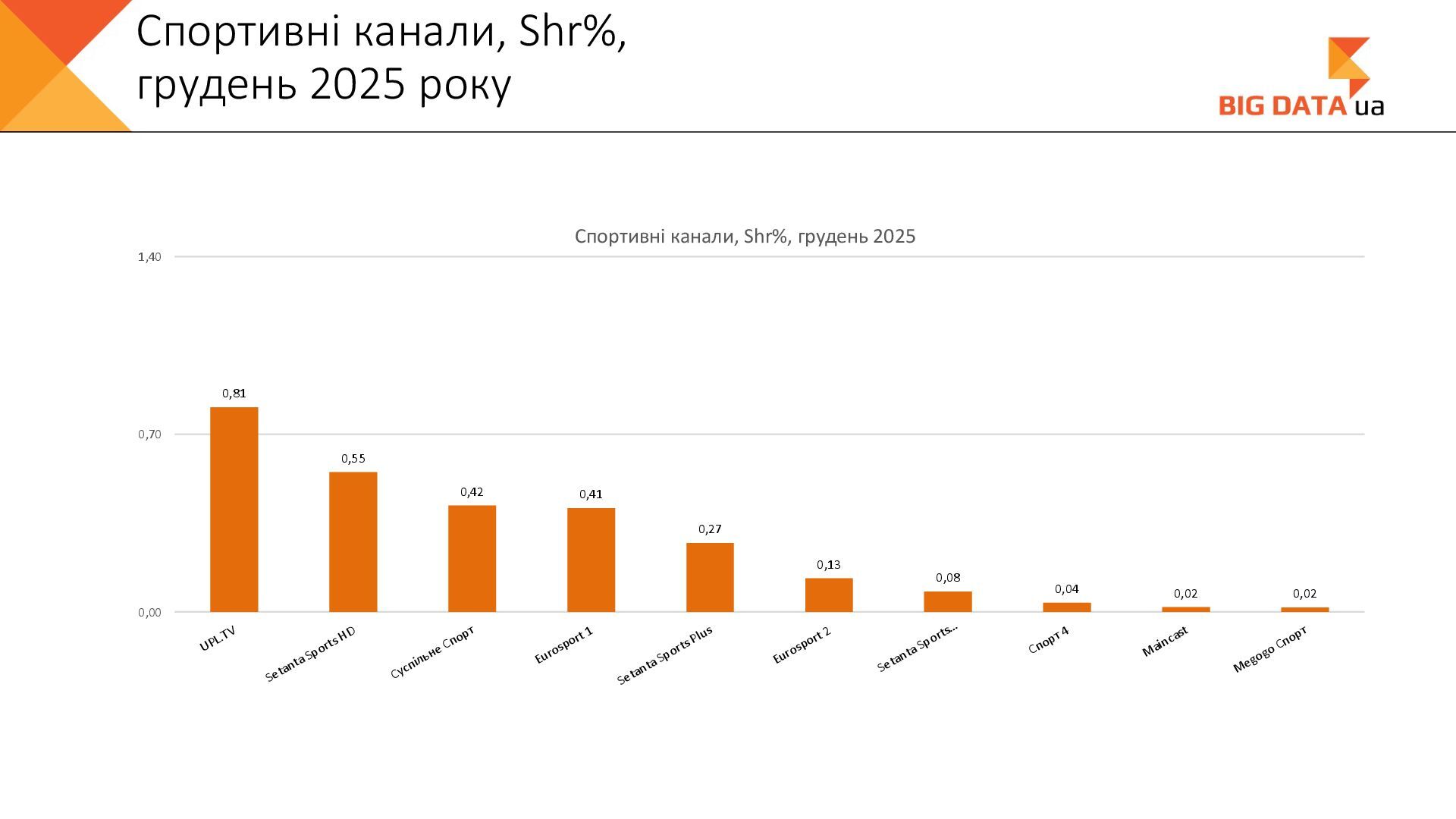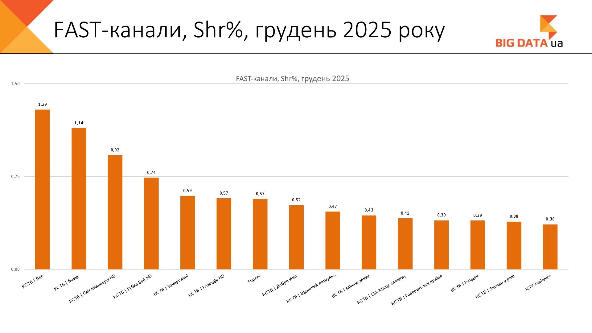 0,023 0,020 0,018 0,016 0,015 0,012 0,012 0,011 0,008 0,007 0,006 0,006 0,006 0,006 0,005 0,005 0,005 0,004 0,004 0,004 0,004 0,004 0,004 0,004 0,004 0,003 0,003 0,000 0,050 0,100 0,150 0,200 0,250 Суспільне Київ СК1 ITV media Рівне Сфера __Перший міський … Репортер Суспільне Крим Полтавське ТВ Галичина ТБ 11 канал Рівне-1 Перший Західний Про Київ ATR Суспільне Луцьк НТА (2-й канал) Круг ТРК Суспільне Івано-… ЕТНО КАНАЛ HD Віта ТБ Черноморская ТРК Аверс (Луцк) Суспільне Дніпро Суспільне Рівне Суспільне Житомир Конкурент ТВ (Луцк) Горизонт ТВ Суспільне Запоріжжя Суспільне Черкаси ПравдаТУТ Львів Суспільне Ужгород Регіональні канали, Shr%, грудень 2025