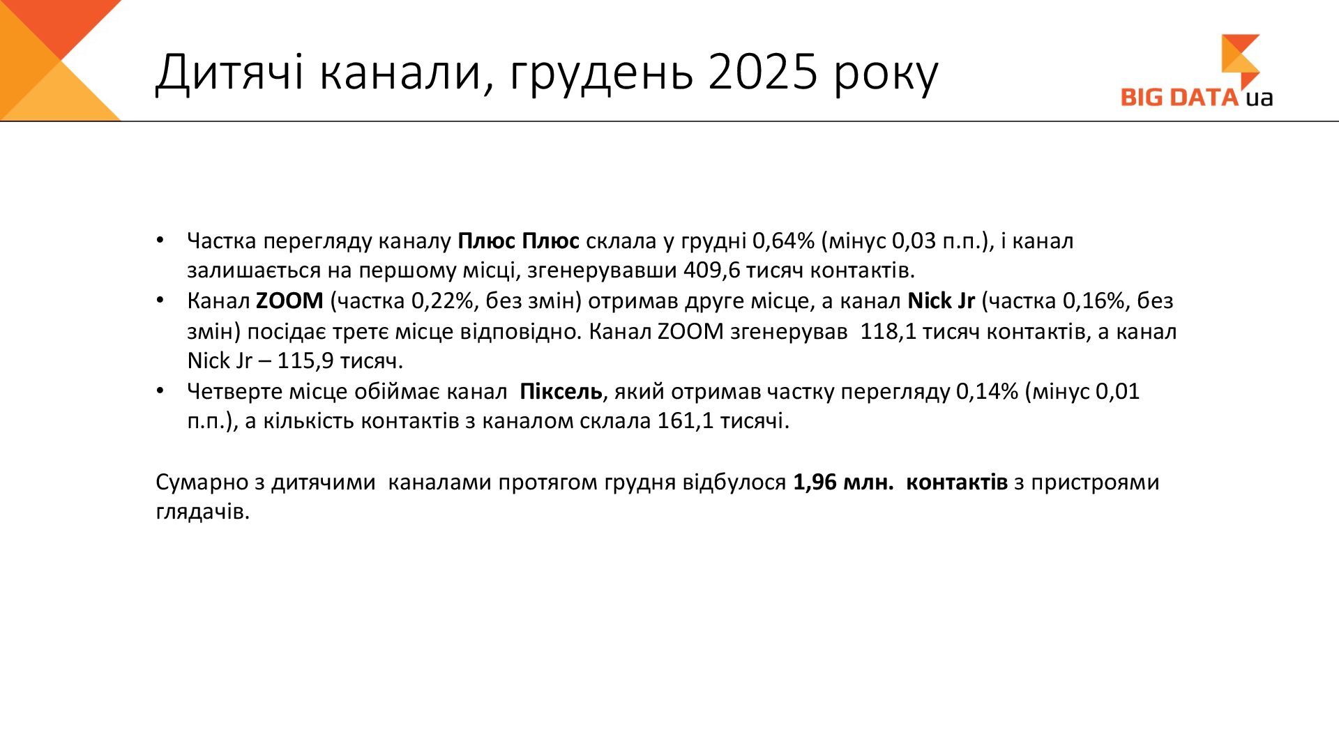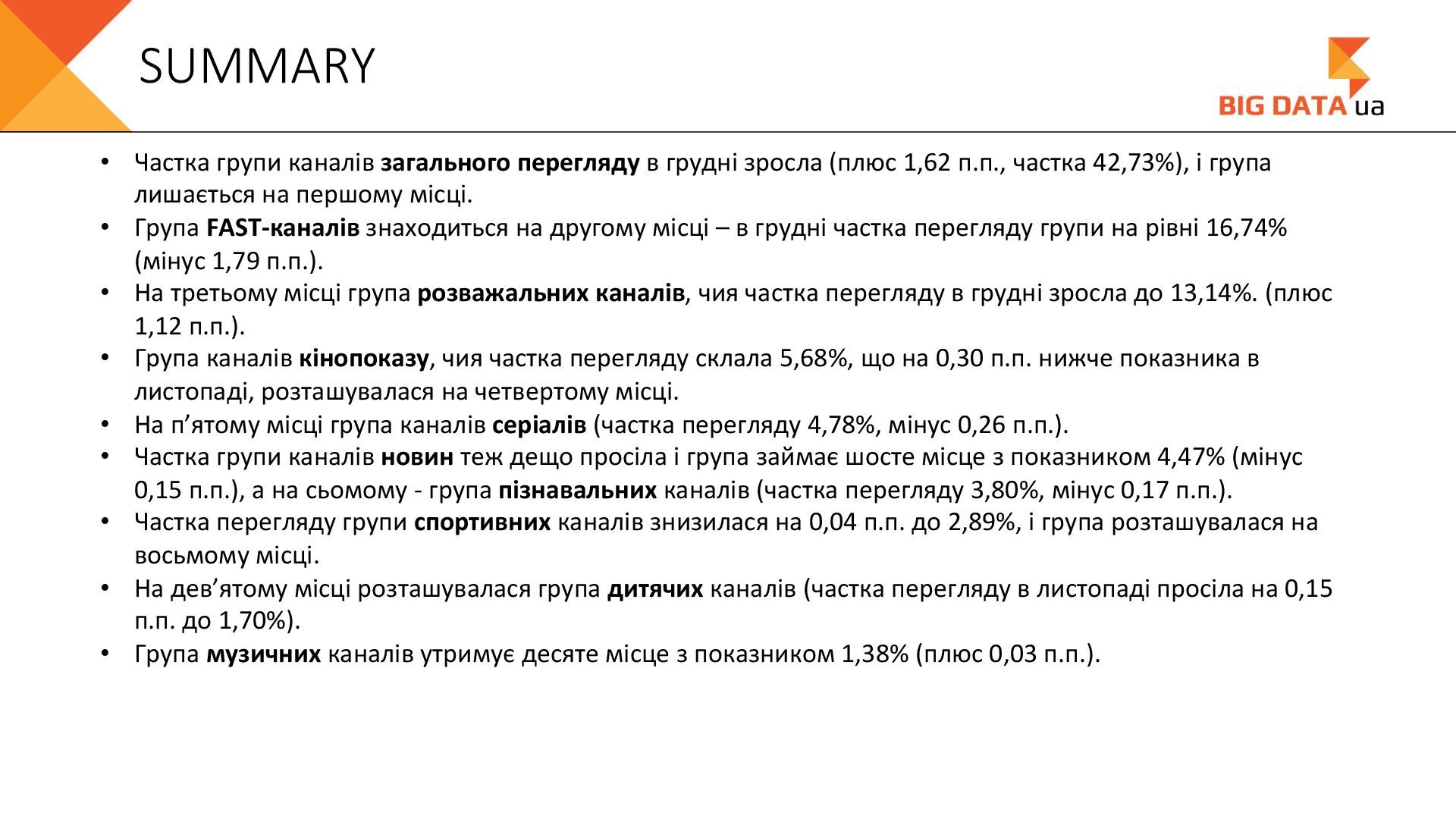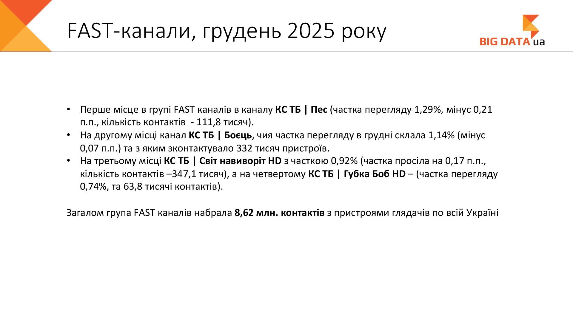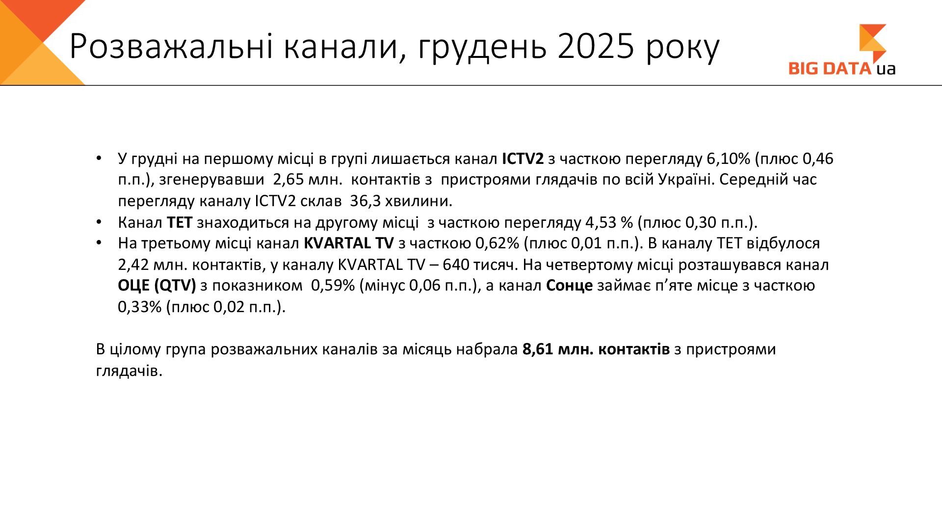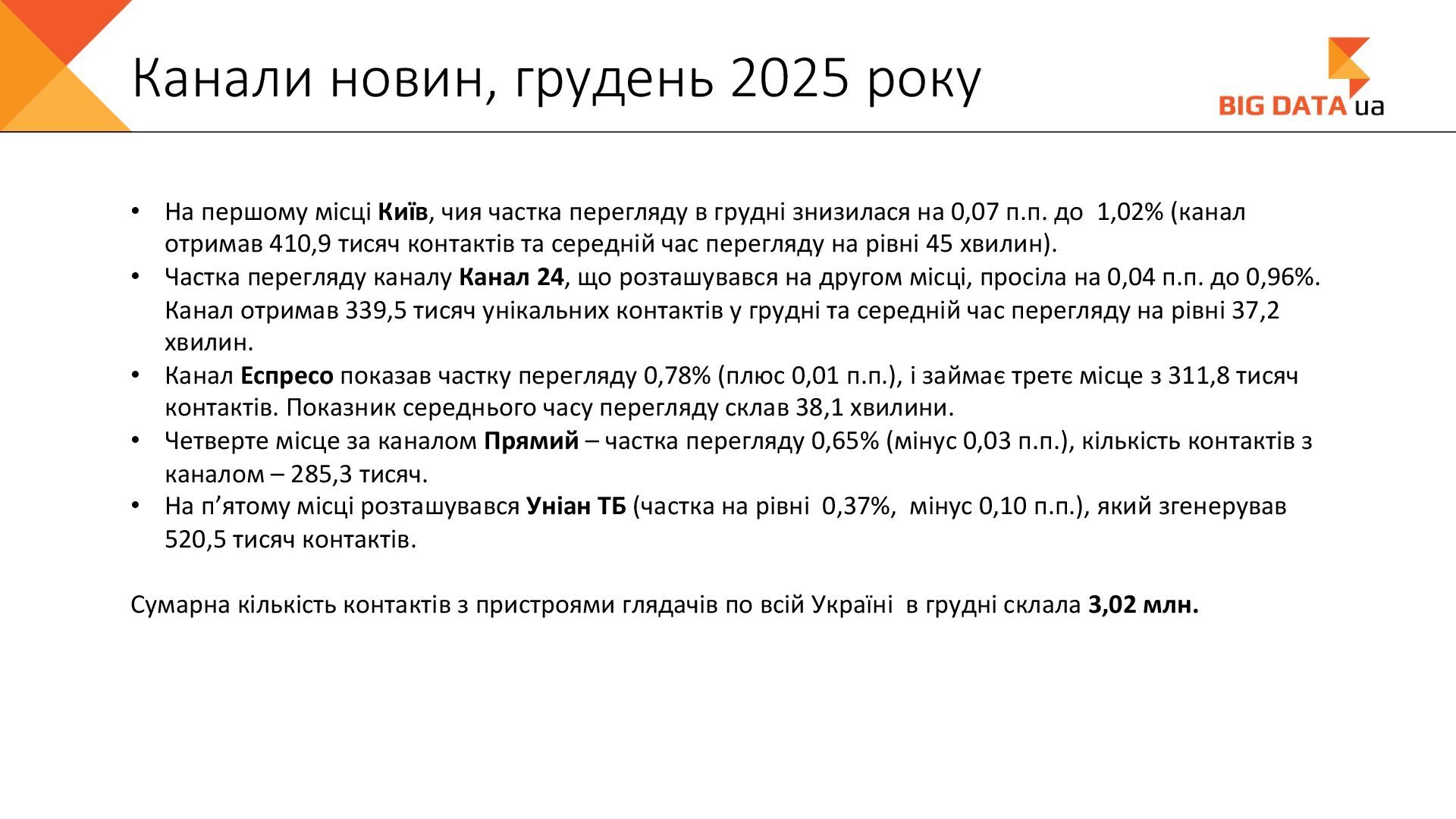 0,023 0,020 0,018 0,016 0,015 0,012 0,012 0,011 0,008 0,007 0,006 0,006 0,006 0,006 0,005 0,005 0,005 0,004 0,004 0,004 0,004 0,004 0,004 0,004 0,004 0,003 0,003 0,000 0,050 0,100 0,150 0,200 0,250 Суспільне Київ СК1 ITV media Рівне Сфера __Перший міський … Репортер Суспільне Крим Полтавське ТВ Галичина ТБ 11 канал Рівне-1 Перший Західний Про Київ ATR Суспільне Луцьк НТА (2-й канал) Круг ТРК Суспільне Івано-… ЕТНО КАНАЛ HD Віта ТБ Черноморская ТРК Аверс (Луцк) Суспільне Дніпро Суспільне Рівне Суспільне Житомир Конкурент ТВ (Луцк) Горизонт ТВ Суспільне Запоріжжя Суспільне Черкаси ПравдаТУТ Львів Суспільне Ужгород Регіональні канали, Shr%, грудень 2025