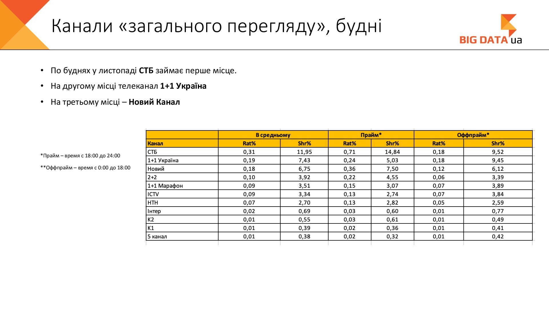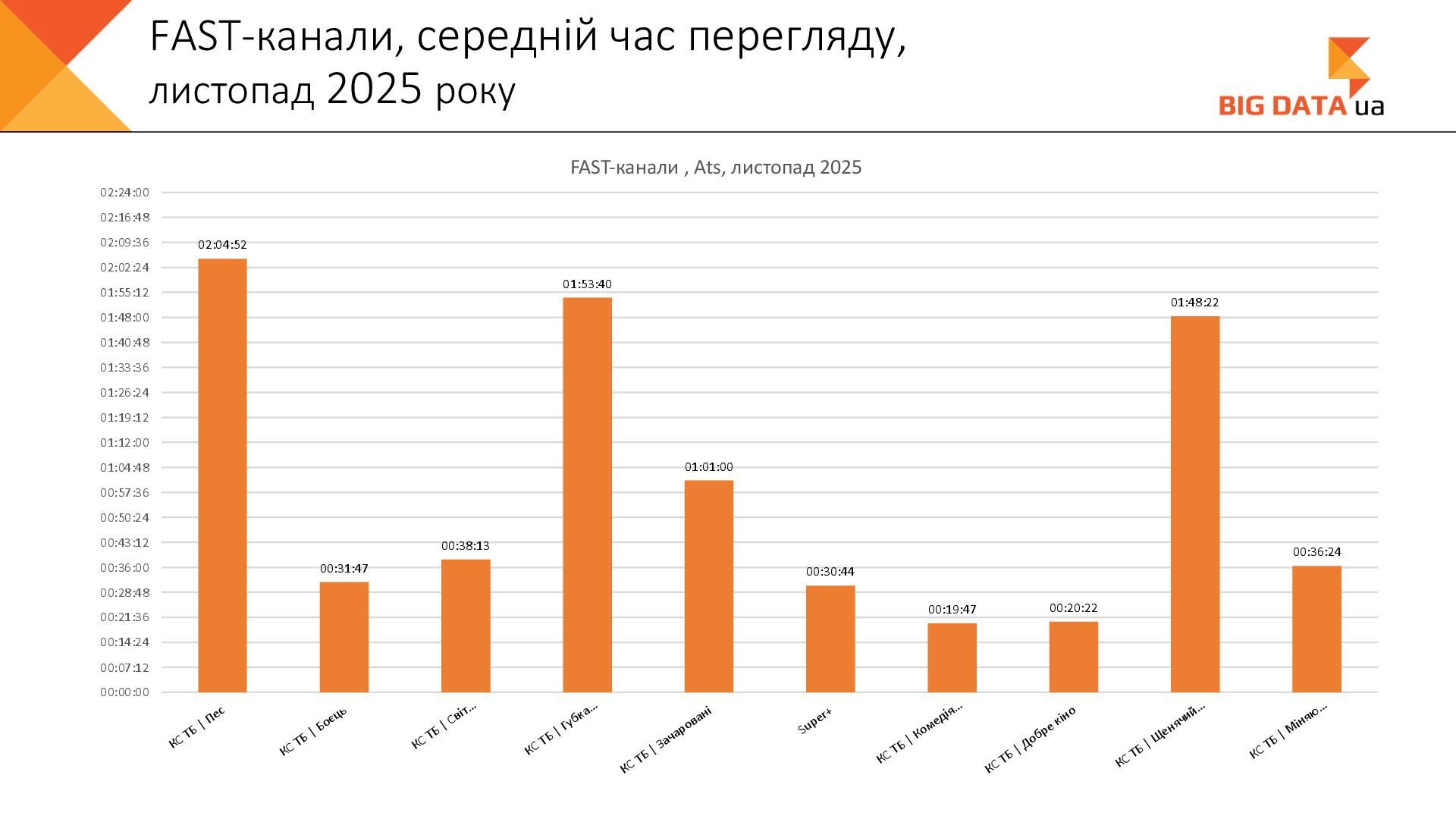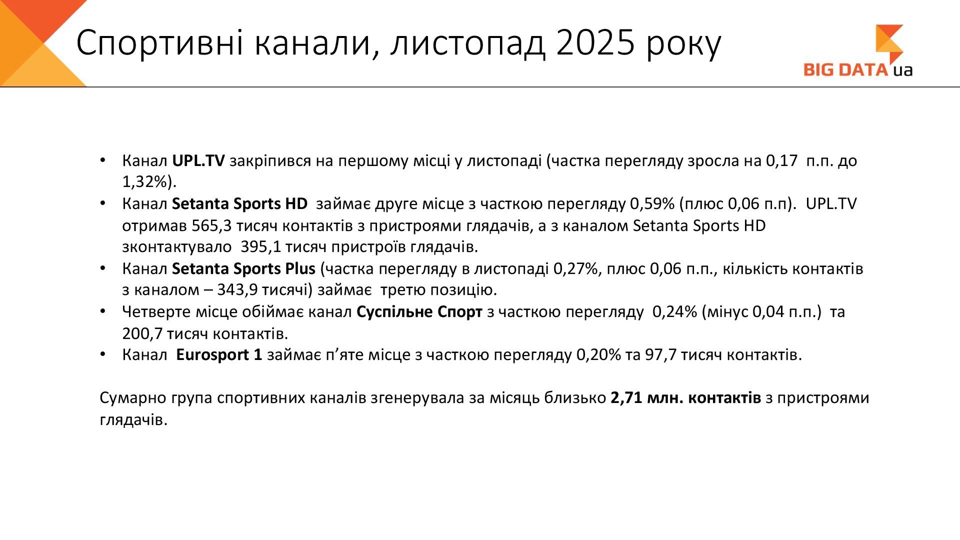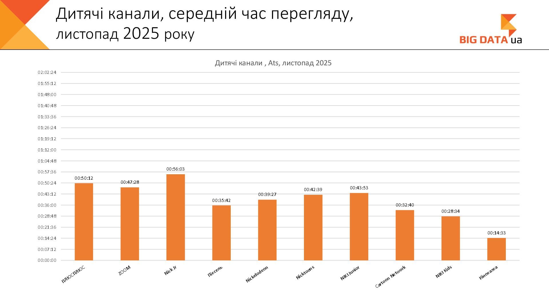 0,021 0,019 0,019 0,016 0,013 0,011 0,010 0,010 0,008 0,008 0,006 0,006 0,005 0,004 0,004 0,004 0,004 0,004 0,004 0,004 0,004 0,003 0,003 0,003 0,003 0,003 0,003 0,000 0,050 0,100 0,150 0,200 0,250 Суспільне Київ СК1 ITV media Рівне Полтавське ТВ __Перший міський … Репортер Суспільне Крим Сфера 11 канал Галичина ТБ ATR Перший Західний Рівне-1 Про Київ Круг ТРК НТА (2-й канал) Черноморская ТРК Суспільне Івано-… Аверс (Луцк) Суспільне Дніпро Віта ТБ Конкурент ТВ (Луцк) ЕТНО КАНАЛ HD ПравдаТУТ Львів Суспільне Черкаси Суспільне Ужгород Суспільне Запоріжжя Суспільне Одеса Суспільне Луцьк Суспільне Житомир Суспільне Вінниця Регіональні канали, Shr%, листопад 2025