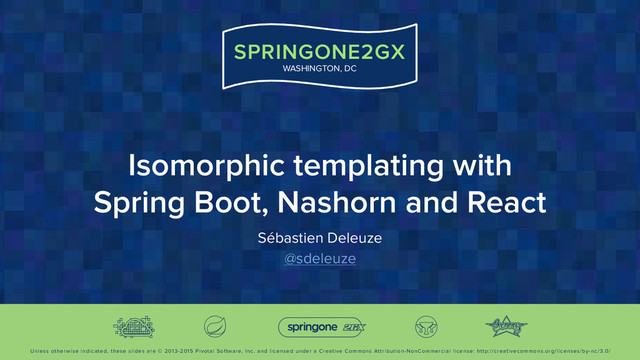 After an introduction presenting the upcoming Spring Framework 4.2 Script Templating support, this talk will show, with code samples, how to develop an application performing the same templates rendering on client AND server based on Spring Boot, Nashorn and Javascript based template engines like React (the latest game changer Javascript library released by Facebook).