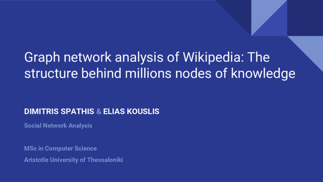 Wikipedia is the largest, most carefully indexed collection of human knowledge ever amassed. More than information about a topic, Wikipedia is a web of naturally emerging relationships. By retrieving the hyperlinks inside each article, we algorithmically construct an undirected network of all 240.000 articles of the Greek edition of Wikipedia. We show that the resulting network graph of 1.405.709 nodes (articles) and 3.975.431 edges (links) follows a power law degree distribution. An empirical comparison of centrality measures (eigenvector, degree and Pagerank) unveils the top-k articles. We find semantically related subgraphs via community detection by evaluating the Louvain Method and Asynchronous Label Propagation. We discuss the leverage of graph structure of local Wikipedias for augmenting NLP tasks in underrepresented languages.