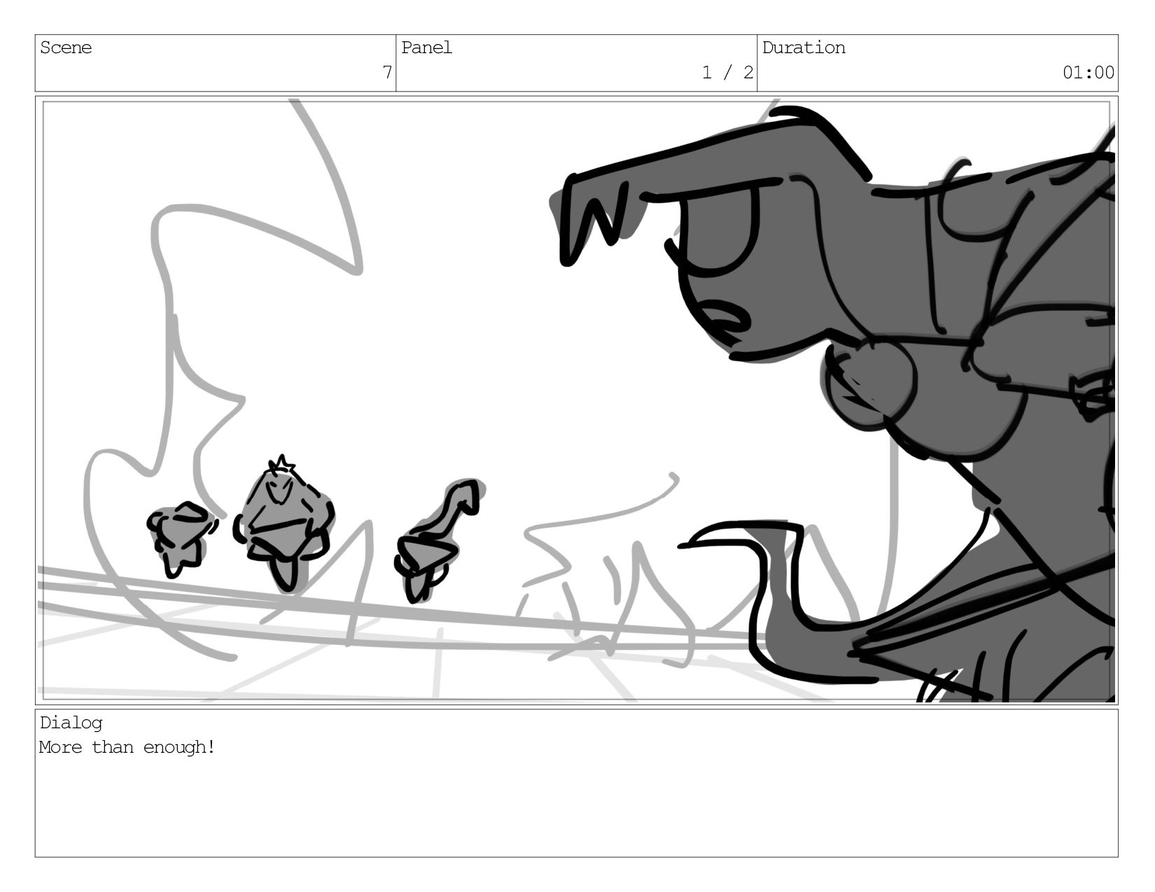 Scene 7 Panel 1 / 2 Duration 01:00 Dialog More