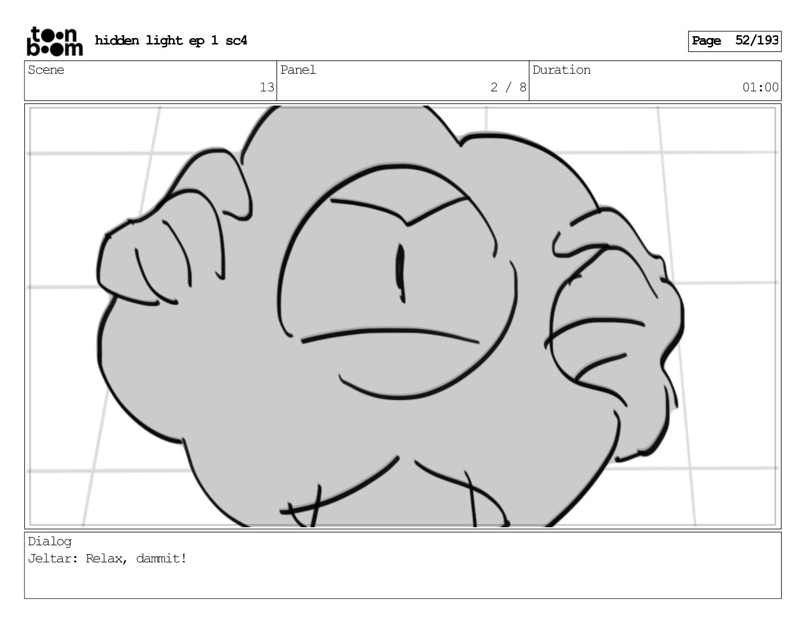 Scene 13 Panel 1 / 8 Duration 01:00 Dialog Jeltar:
