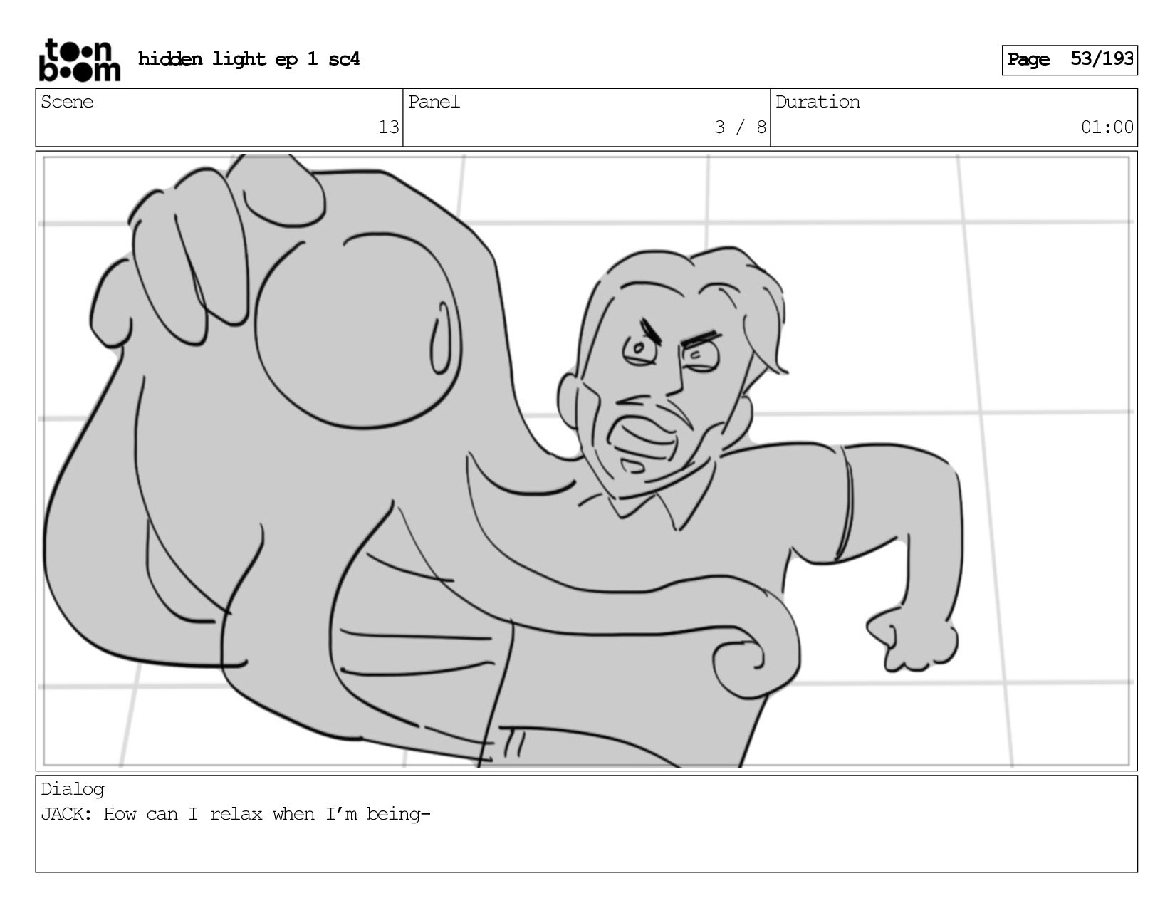 Scene 13 Panel 4 / 8 Duration 01:00 Dialog JACK: