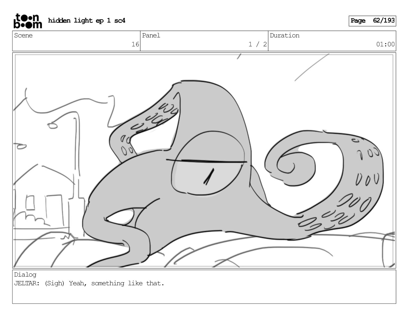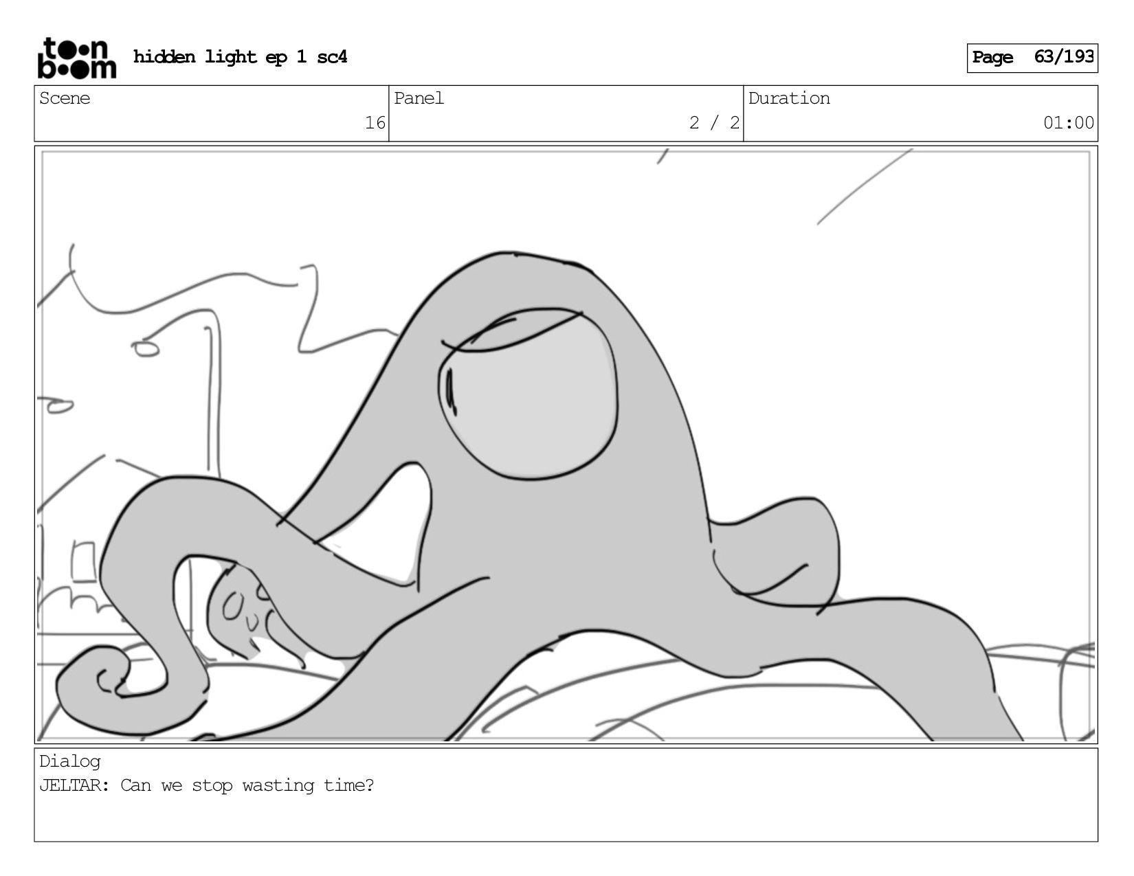 Scene 16 Panel 1 / 2 Duration 01:00 Dialog JELTAR: