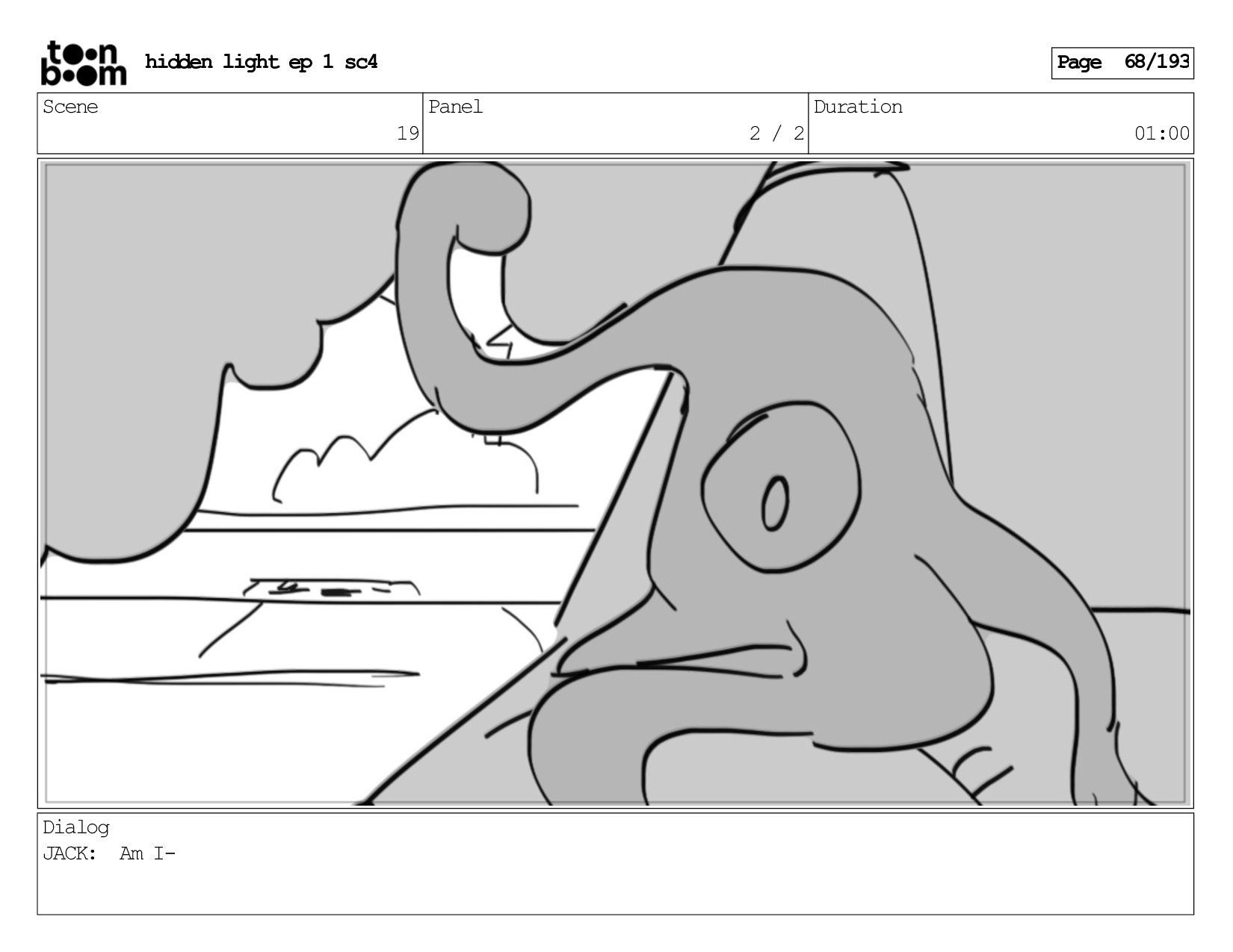 Scene 19 Panel 1 / 2 Duration 01:00 Dialog JACK:
