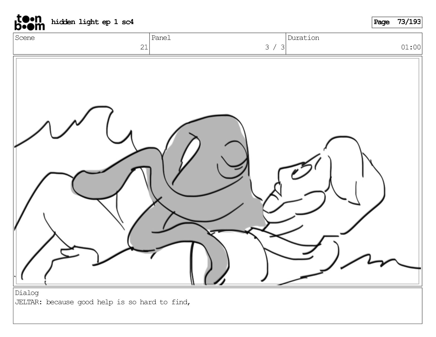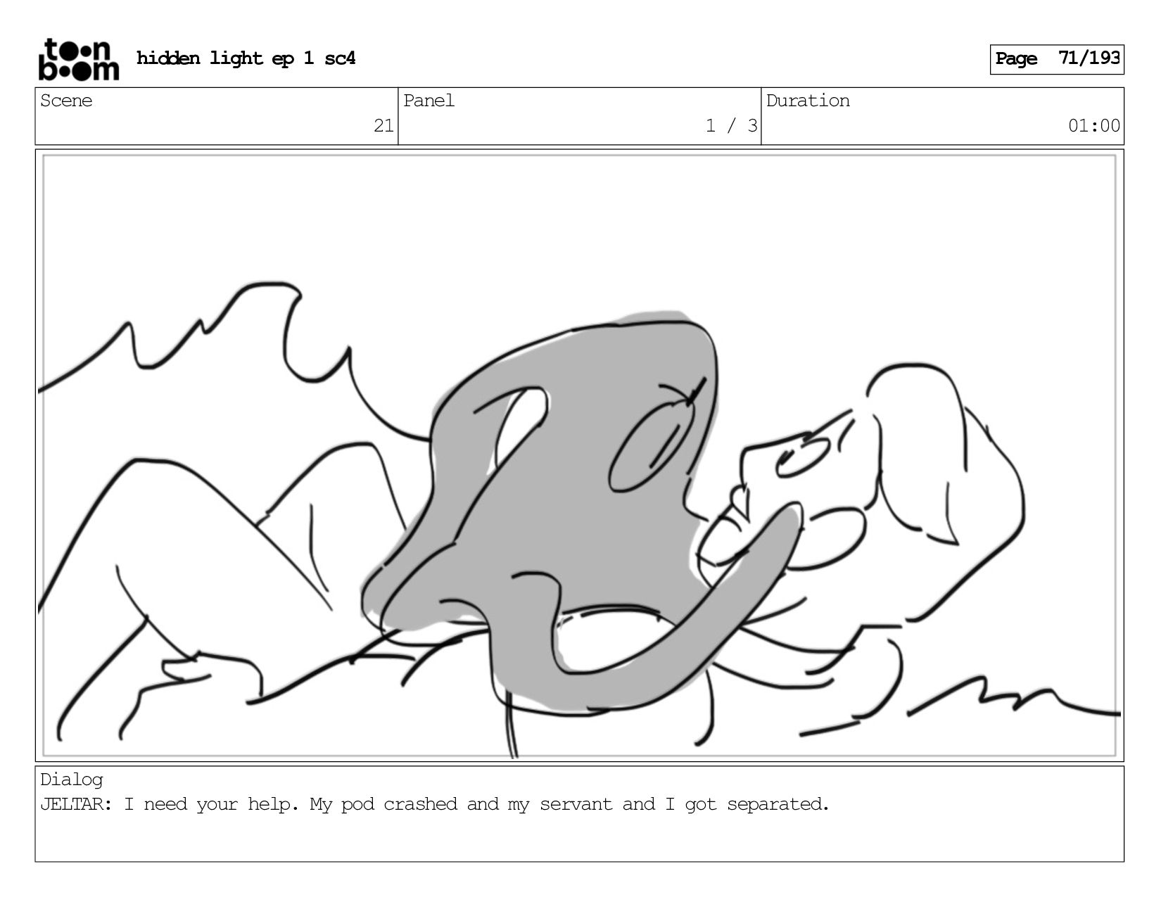Scene 21 Panel 2 / 3 Duration 01:00 Dialog JELTAR: