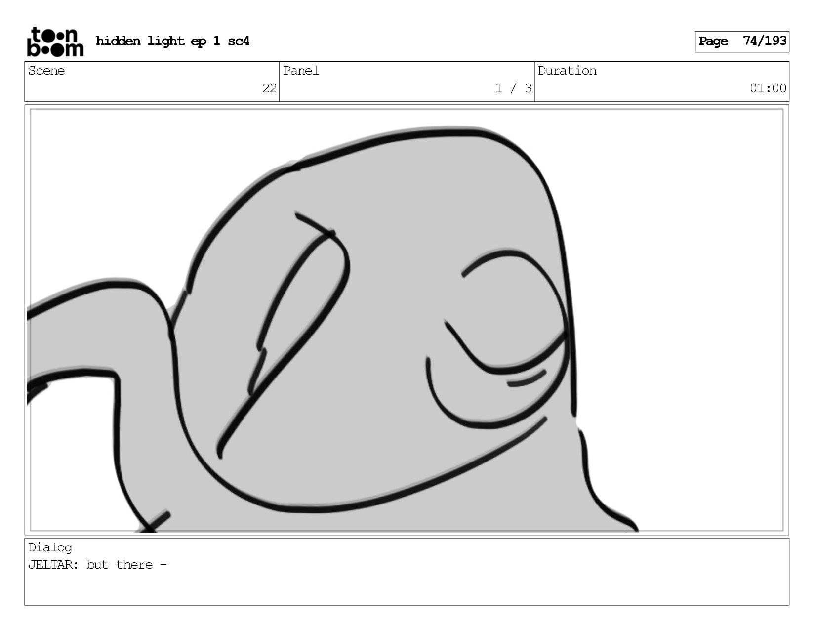 Scene 22 Panel 1 / 3 Duration 01:00 Dialog JELTAR: