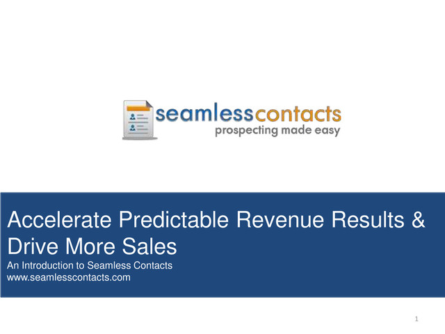 full of qualified prospects. I highly recommend working with Seamless Contacts” Brian, Dow Jones “I don’t have the time to build prospect lists or sift through an outdated database of people. This is exactly why I work with Seamless Contacts. They provide all the information needed to target the top decision makers we should be closing deals with. The service is impeccable and the data is the best out on the market.” David, IBM “I make hundreds of cold calls a week. I work with Seamless Contacts because I want to exceed my sales quota’s every quarter. It’s that simple.” Dan, eBay