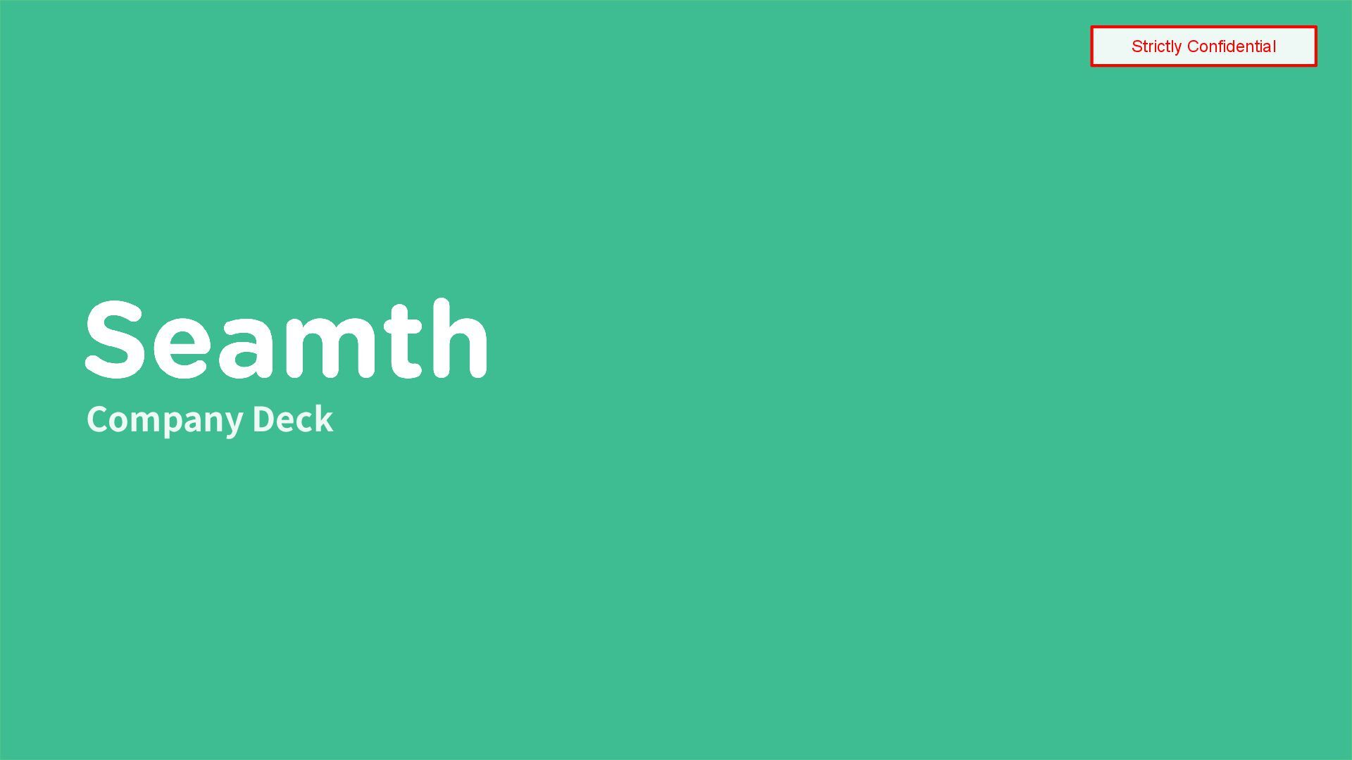 Seamth, Inc. All Rights Reserved. 1 Strictly Confidential Company Deck
