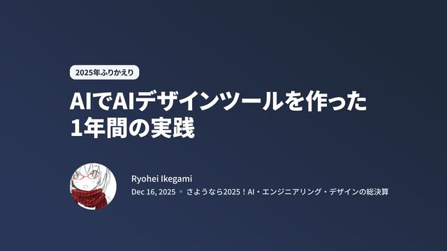 AIでAIデザインツールを作った 1年間の実践 2025年ふりかえり Ryohei Ikegami Dec 16, 2025 さようなら2025!AI・エンジニアリング・デザインの総決算
