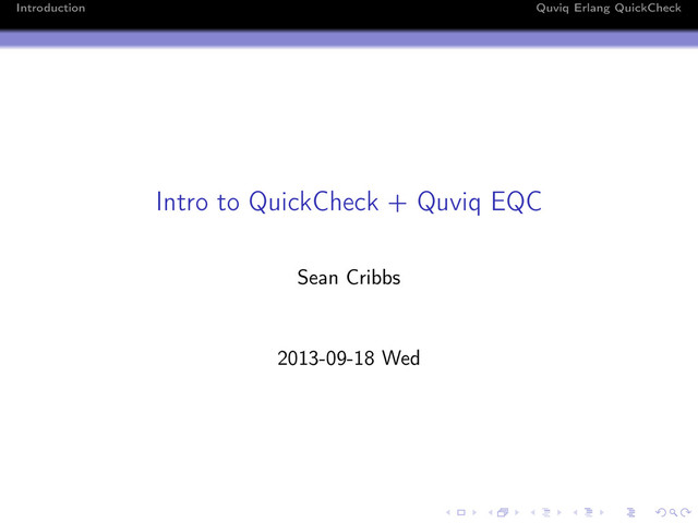 & eqc_fsm Generate a sequence of commands Compute an abstract model Run the commands and compare results Driving other systems eqc_c: automagic binding of C code eqc_socket: send commands over sockets Testing parsers: eqc_grammar Create token generators Test roundtrips: AST -> pretty print -> lex/parse -> AST