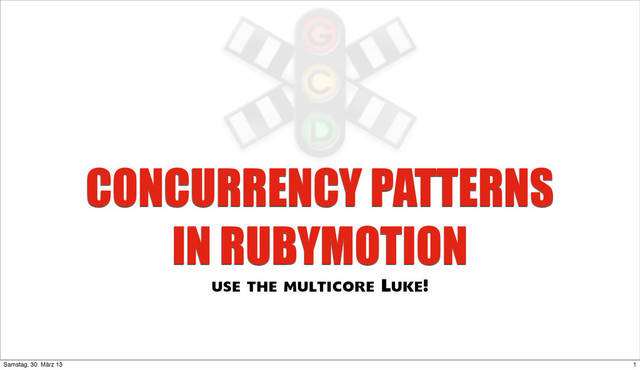 hardware like multiple CPU or GPU cores Concurrency: ways of structuring programs into independent activities that can communicate and synchronise with each other Parallelism ≠ Concurrency 8 Samstag, 30. März 13