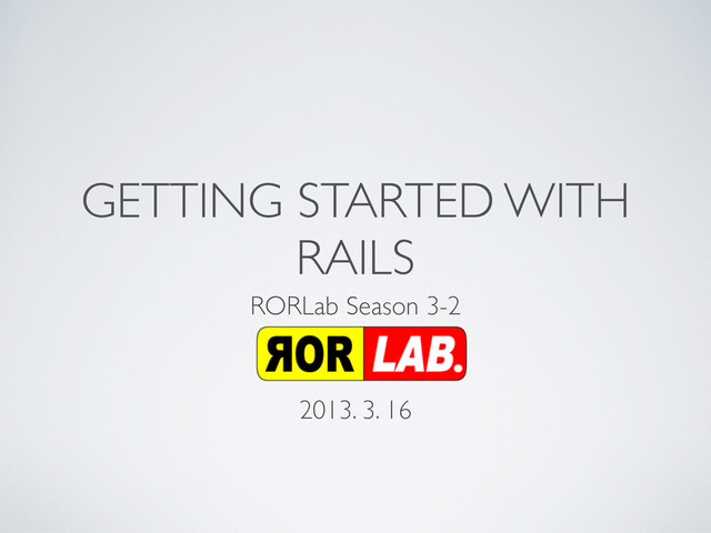 GETTING STARTED WITH RAILS RORLab Season 3-2 2013. 3. 16