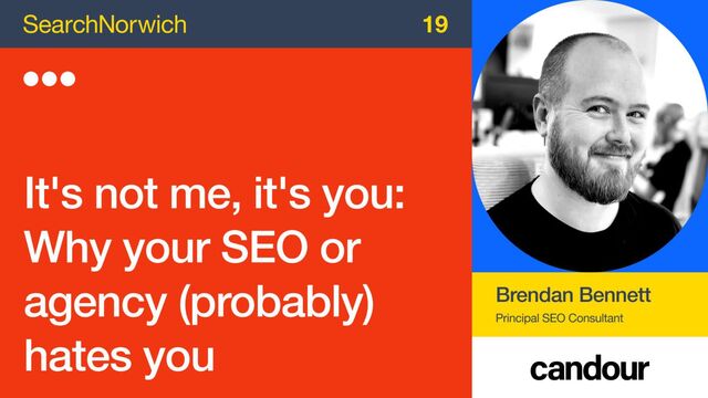 In this talk, Brendan Bennett (Principal SEO Consultant at Candour) discusses the realities of working in an SEO agency.