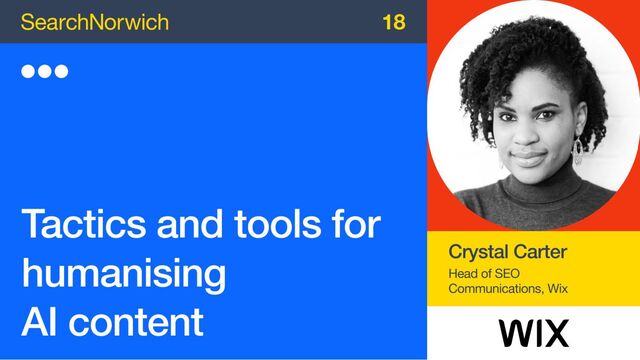 In this presentation from SearchNorwich 18 in October 2024, Crystal Carter, Head of SEO Comms at Wix, explores the importance of integrating human expertise into AI-driven content creation.