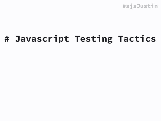of each type of test~~ * ~~integration tests~~ * ~~frameworks vs. TDD~~ * a handful of situational tactics * using Jasmine * generally applicable-ish *ymmv*