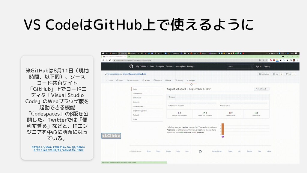 VS CodeはGitHub上で使えるように 米GitHubは8月11日(現地 時間、以下同)、ソース コード共有サイト 「GitHub」上でコードエ ディタ「Visual Studio Code」のWebブラウザ版を 起動できる機能