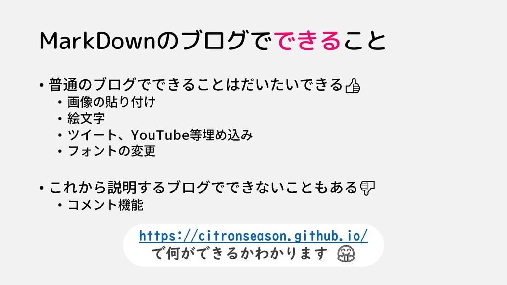 MarkDownのブログでできること • 👍 • • • • • 👎 •