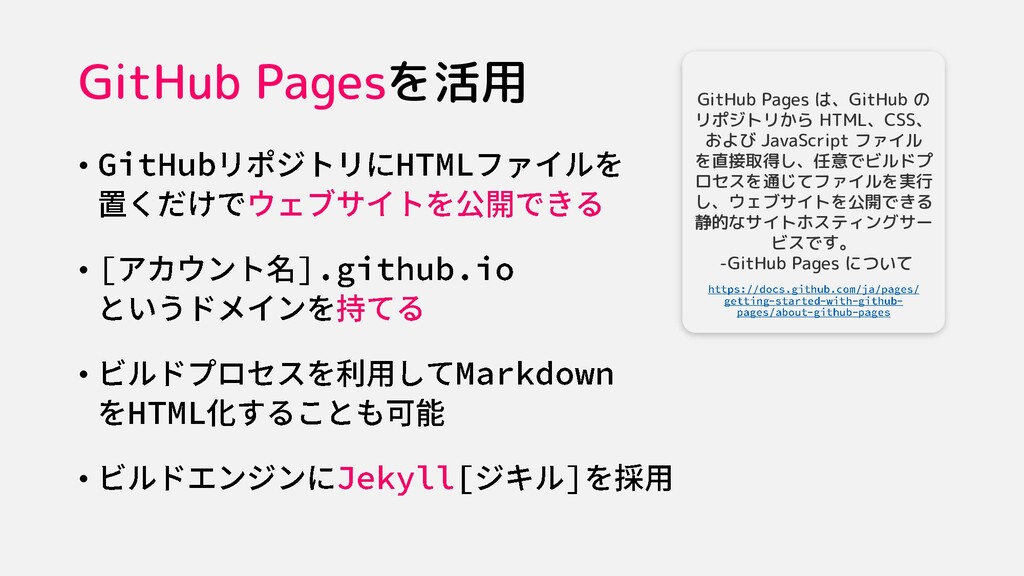 GitHub Pagesを活用 • • • • GitHub Pages は、GitHub の