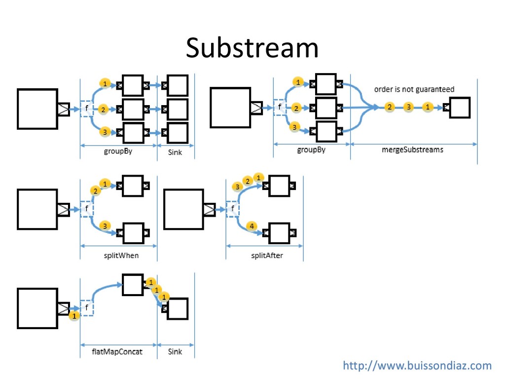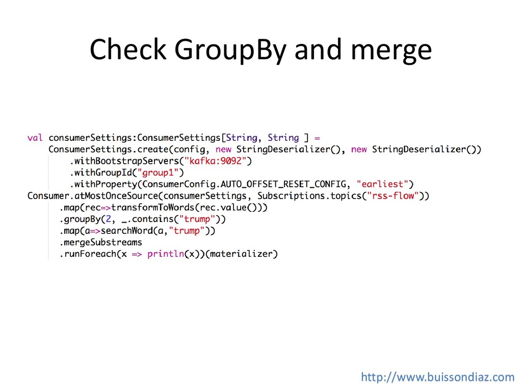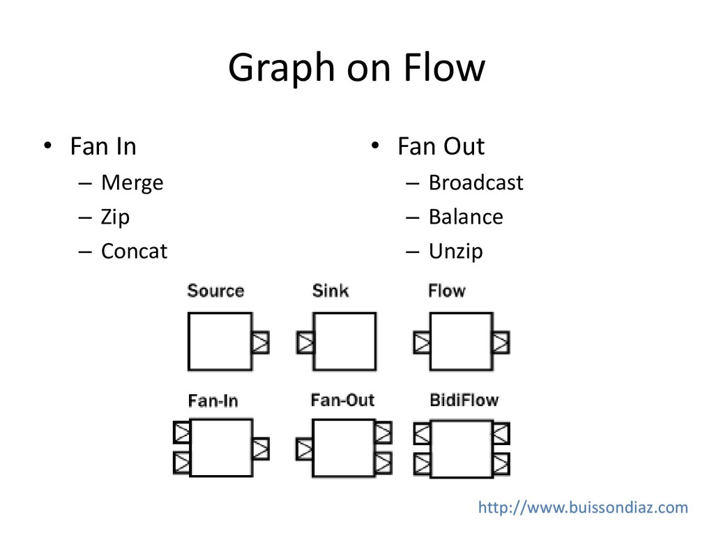 recover : Transform and log the error • revoverWith : Switch to another Source • recoverWithRetries : Switch to another Source with retry • Delayed restart http://www.buissondiaz.com