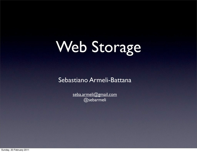 change • Mobile Sites • Offline apps • More Storage? Index Database API Sunday, 20 February 2011