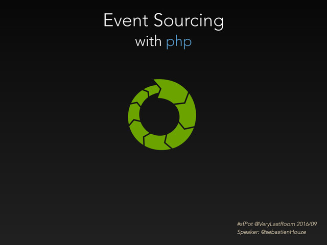 1. We start from pure domain code $userId = new Domain\UserId('shouze'); $fleet = Domain\VehicleFleet::ofUser($userId); $platenumber = 'AM 069 GG'; $fleet->registerVehicle($platenumber, 'My benz'); $fleet->parkVehicle($platenumber, Domain\Location::fromString('4.1, 3.12'), new \DateTimeImmutable()); // 2. We build our sourceable stream $streamName = new EventSourcing\StreamName(sprintf('vehicle_fleet-%s', $userId)); $stream = new EventSourcing\Stream($streamName, $fleet->popRecordedChanges()); // 3. We adapt the domain to the infra through event sourcing $serializer = … $eventStore = new Adapters\FilesystemEventStore(__DIR__.'/var/eventstore', $serializer, new Ports\FileHelper); $eventStore->commit($stream);