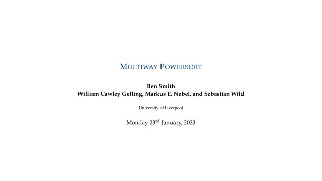 . , Lr−1, first set li = Li n , then: • Define ai , the normalized centre of the (i − 1)st run: ai = i−1 j=0 lj − 1 2 li−1, • Define bi , the normalized centre of ith run: bi = i−1 j=0 lj + 1 2 li • Hence, define the power of the boundary between these runs, Pk i : Pk i = min{p ∈ N : ⌊ai · kp⌋ < ⌊bi · kp⌋} BEN SMITH WILLIAM CAWLEY GELLING, MARKUS E. NEBEL, AND SEBASTIAN WILD 5 / 16