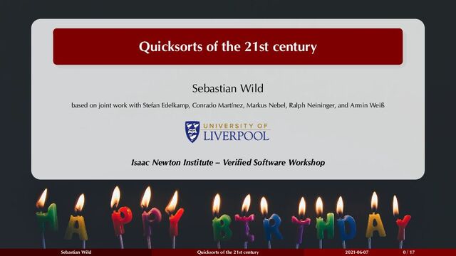 This talk was part of the special session celebrating quicksort's 60th birthday during the “Verified software: tools and experiments” workshop at the Isaac Newton Institute (https://www.newton.ac.uk/event/vsow04/).