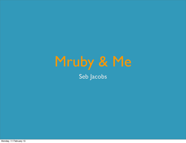 end def test_assert_equal assert_equal('', nil.to_s) end def test_assert_includes assert_includes([1,2,3], 1) end def test_assert_instance_of assert_instance_of Class, Array end end MTest::Unit.new.run https://github.com/iij/mruby-mtest Monday, 11 February 13