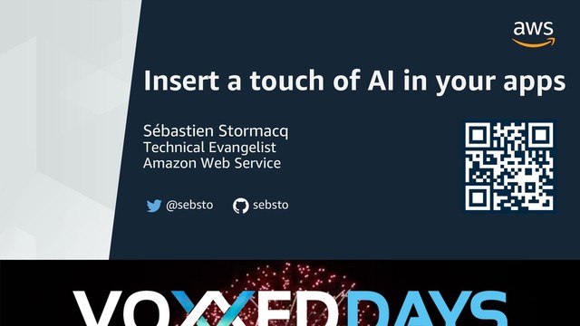 Amazon brings computer vision, natural language processing (NLP), speech recognition, text to speech, and machine translation within the reach of every developer. API-driven application services enable you to easily plug in pre-built artificial intelligence (AI) functionality into your applications, and to automate manual workflows. In this session, we will share how to build the next generation of intelligent apps that can see, hear, speak, understand, and interact with the world around us.