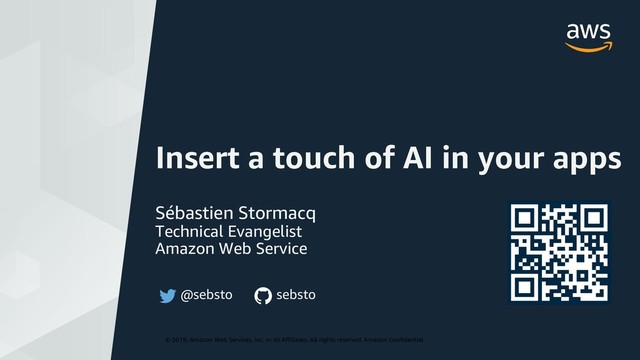 AWS wants to put AIML in the hands of every developers. We'll start by exploring services for hard core data scientists and demo Image Recognition algorithms on AWS Sagemaker. In a second phase, we will explore higher level services, available to all developers. We will explore natural language processing (NLU), speech recognition (ASR), speech generation (TTS) and others. I will show you how to create intelligent applications to better serve your customers.