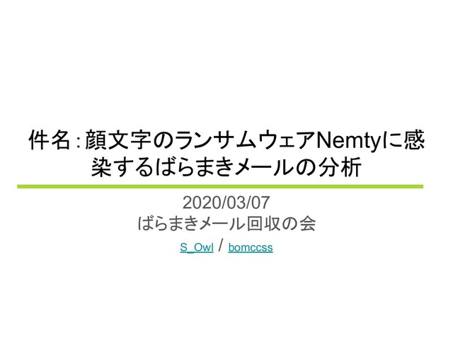 :* :-) :-* :-D :D ;) ;-) ;D ▪本文 :-) ▪添付ファイル(XXXXXXは6桁整数) PIC_XXXXXX_2020.zip → PIC_526246_2020_jpg.vbs (MD5: 913e1ce18aa6c620dbf33eeecdbc1085 ) IMGXXXXXX2020_jpg.zip → IMG4956432020_jpg.vbs (MD5: 9c3d4bdfb97553dd7484c01235dc4c50 ) ▪通信先 hxxp://92.63.197[.]190/jp.exe hxxp://92.63.197[.]190/jap.exe ▪マルウェア種別 ダウンロードされるexeはランサムウェア Nemty 3