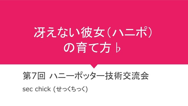 冴えない彼女(ハニポ) の育て方♭ 第7回 ハニーポッター技術交流会 sec chick (せっくちっく)