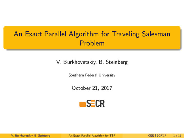 We describe an exact algorithm for traveling salesman problem based on simplified branch-and-bound algorithm developed by E. Balas and N. Christofides, parallelized with OpenMP on a multi-core processor. It has shown better performance than algorithms in preceding articles and works. Our article is intended for people who use parallel programming technologies, deal with mathematical optimization problems, have interest in perspective algorithms for bioinformatics or NP-hard problems.